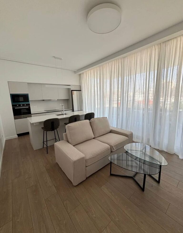 RENT – Premium 1-bedroom apartment in a closed complex. Bedrooms: 1. Bathrooms: 2 (guest and main in bedroom). Balcony: 1. System: Smart home. Total area: 85 m². Heating: Underfloor heating. Air conditioning: VRV system. Security: Alarm and 360° video surveillance. Kitchen: Fully equipped. Pool. Finnish sauna and hammam. Playground. Underground and guest parking. Closed territory with video surveillance. Rent: 2300 € / month. Reg:AM: 1256/AA258/E