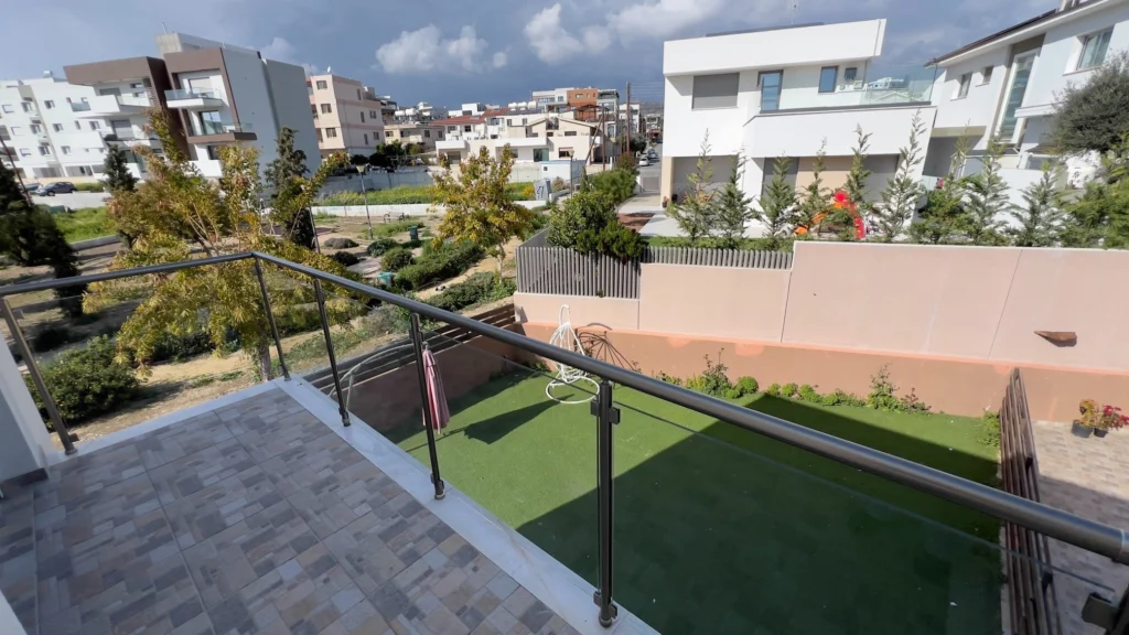 The three-bedroom semi-detached house is located in Agios Athanasios, 1km from The Grammar School and 7mins drive to Foley’s School. The house comprises 3 bedrooms, 1 ensuite bathroom with a shower, 1 family bathroom, and a guest WC on the ground floor. There are solar panels for hot water, a/c split units in all rooms, mosquito nets, parquet floors, shutters (manual), and double-glazed windows. The kitchen is fully equipped (dishwasher), and the house is UNFURNISHED (only electrical appliances). Year built 2016. The covered area is 170sq.m, plot size 247sq.m.