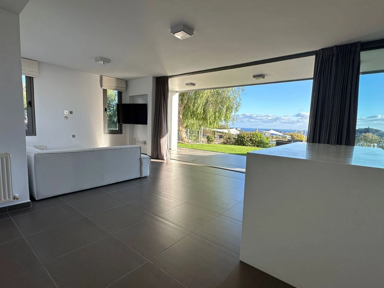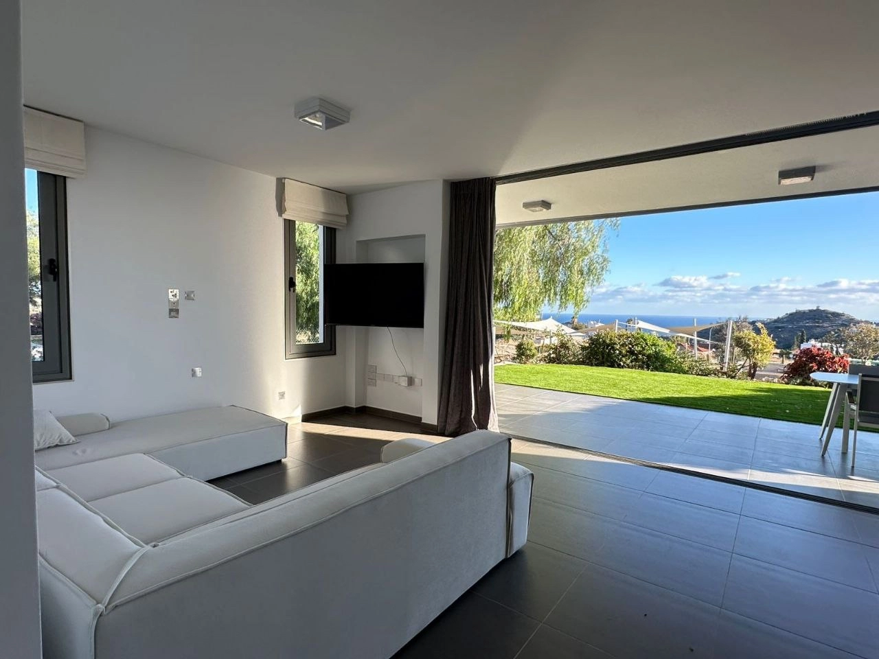 Two-bedroom apartment of 130 m2 for rent in the area of Agios Tychonas, Limassol. The apartment includes 2 bedrooms, 2 bathrooms with showers, a kitchen, a living room, a pantry/laundry room next to the kitchen, game rooms, balconies and a private garden of 150 m2. The apartment is fully furnished and equipped with Miele appliances, air conditioners are installed in all rooms, an alarm system, as well as a covered parking space and a separate storage room. The apartment is located on the ground floor. The residence is just a 10-minute walk from the beach next to the Amara Hotel, and the communal pool of the complex is located just 10 meters from the private garden. The property was built in 2012 and features beautiful views of the sea and mountains, as well as a high energy efficiency class A, which makes it comfortable to live in all year round.