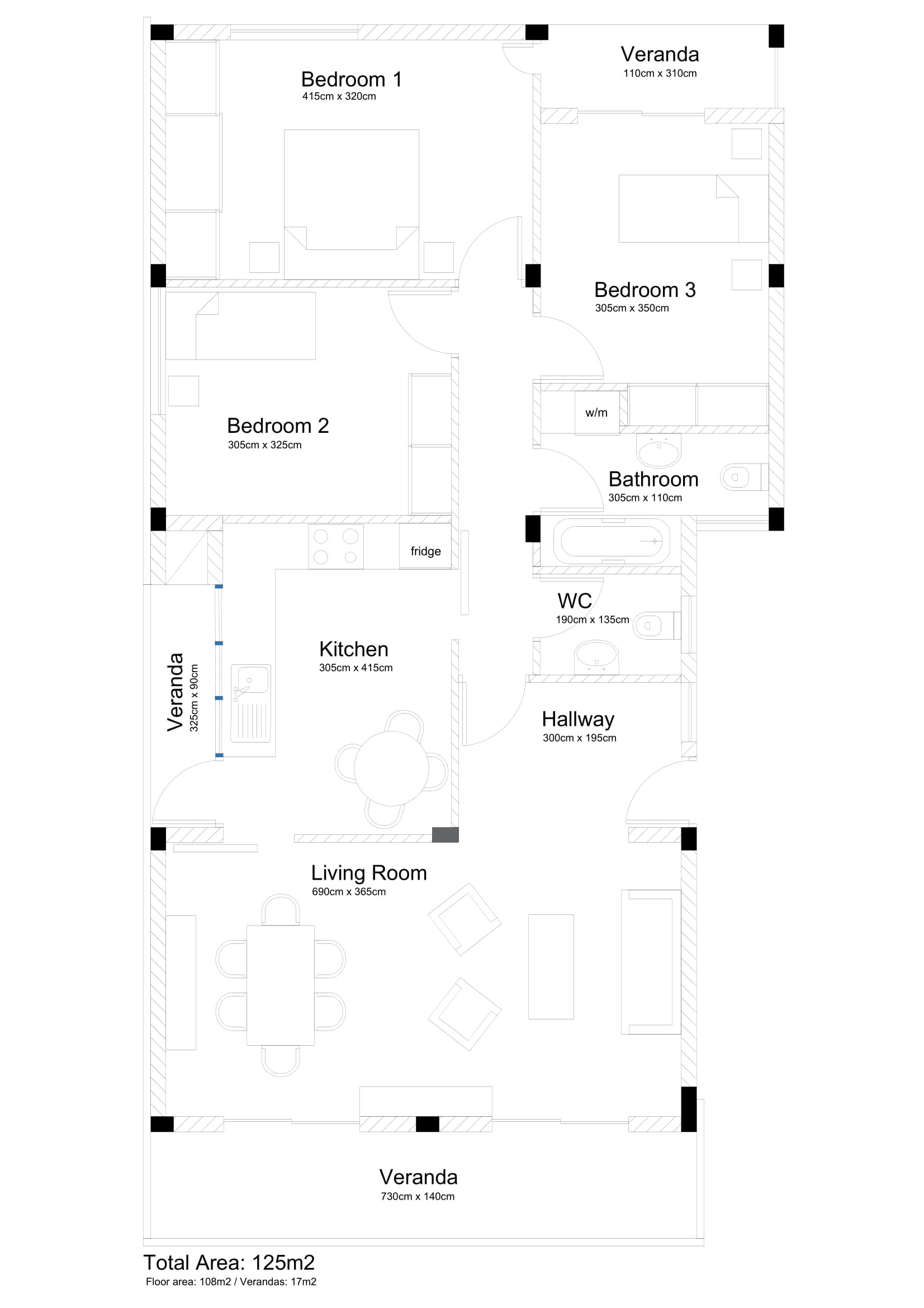 • Covered area, m²: 125