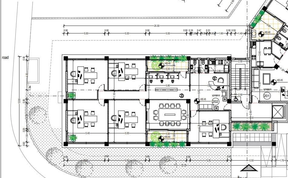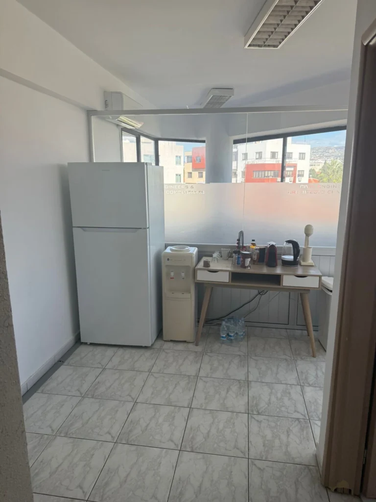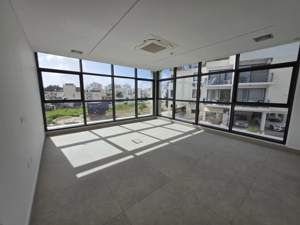 For rent in the area of Town Centre Paphos, Paphos office space of 223 m2 with a terrace of 20 m2 in a new office center built in 2025. The office is located on the ground floor of the right wing and includes its own reception area, two bathrooms, an equipped kitchen, a meeting room, offices, an open space and a balcony. The building is equipped with an elevator, a security and alarm system, VRF-air conditioning, noise insulation and energy efficiency class A; five indoor and five outdoor parking spaces are provided to the room, and the location in the very center of the city provides convenient access to all areas of Paphos and quick access to the highway towards Limassol.