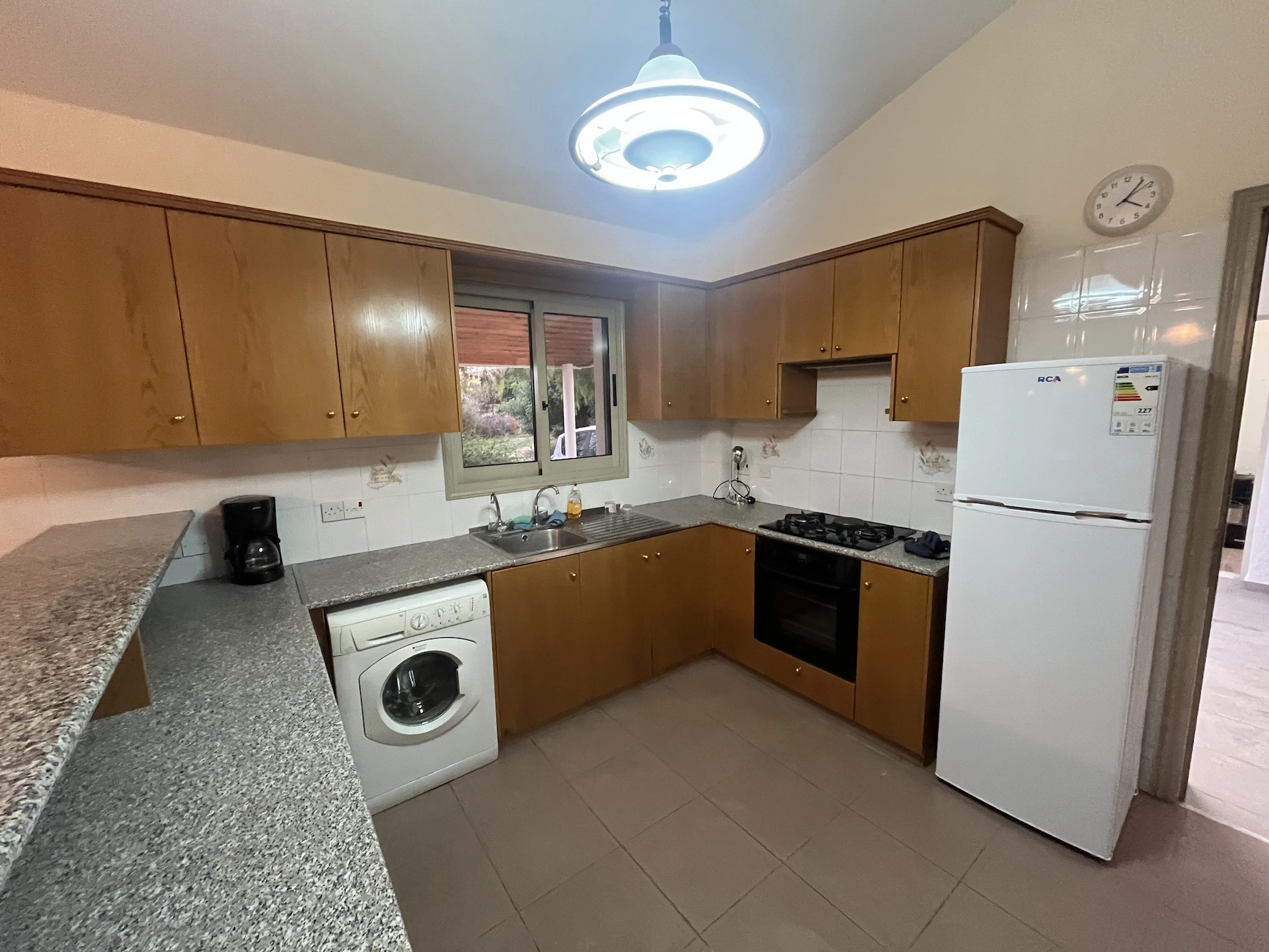 For rent: This cozy and spacious 2-bedroom house in Pyrgos Lemesou offers comfortable living with an internal covered space of 80 m2 plus 110 square meters of covered veranda. The property features a renovated interior from 2025, including a bright living area, a well-equipped kitchen, and a stylish bathroom. Both bedrooms are spacious, designed to provide a relaxing atmosphere.