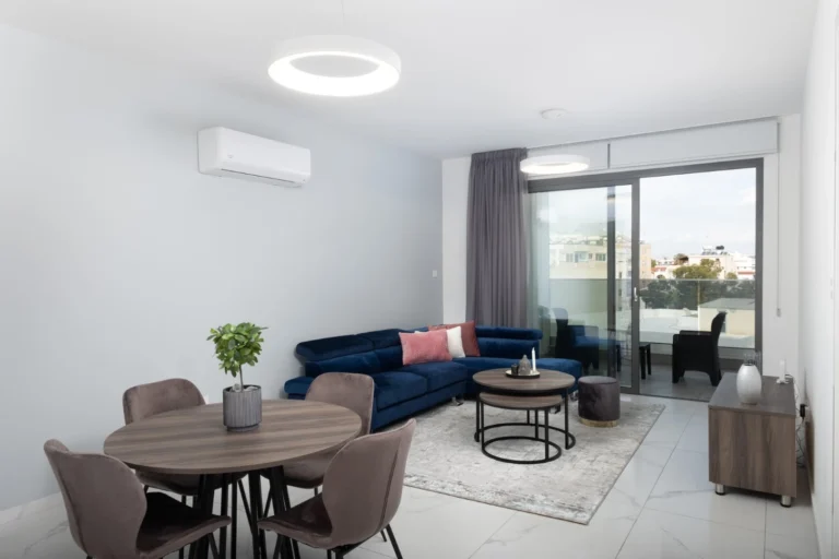 1 bedroom apartment for rent in a gated community in the Town Center area of Larnaca, Larnaca. Modern complex with enclosed area, covered parking space, outdoor swimming pool. The apartment is fully furnished, with a panoramic view of the city from the terrace. Walking distance to the city infrastructure.