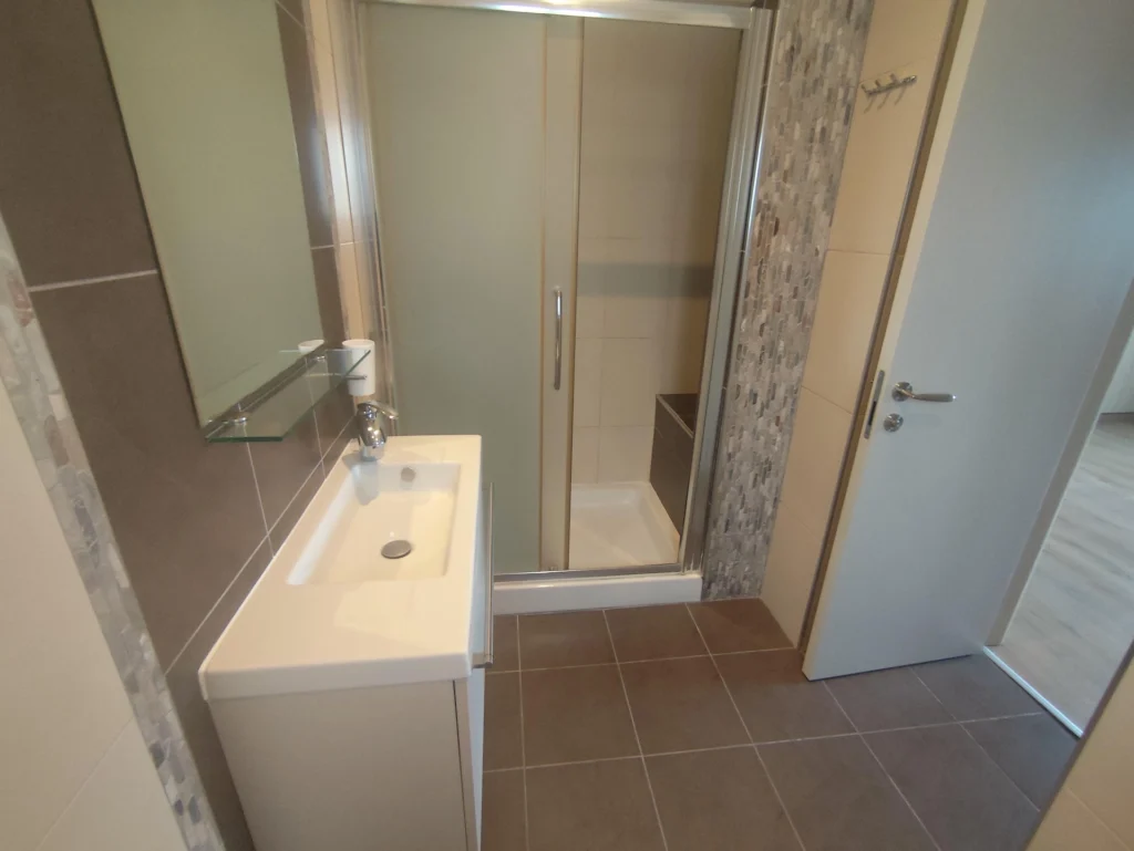 It has separate kitchen, a living room /dining room , store room, central heating, fire place ,three bedrooms (one of them en-suite) , guest w.c. and one family bathroom .