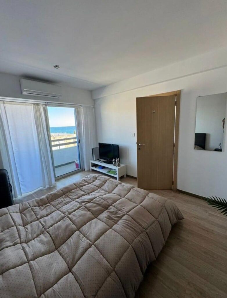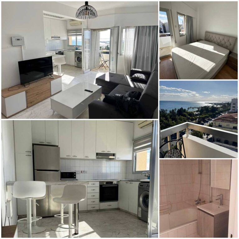 Rent Limassol, Germasogeia (Palm Beach Complex) Cozy 1-bedroom apartment with sea view, within walking distance of the beach. 1 bedroom, 1 bathroom, Area: 43 m², Floor: 4th, Fully furnished, Shared pool and garden, Elevator in the building, Parking: covered. Rent: 1450 €/month. Reg: AM: 1256/AA258/E