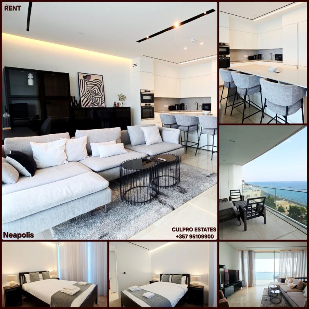 Rent 2 bedroom apartment with panoramic sea view in the Neapolis area, Limassol. All infrastructure and the beach are within walking distance. 3rd floor Total area: 132 sq m First line Kitchen Living room 2 bedrooms Shower + bathroom rooms Veranda Heated floor VRV air conditioning Smart home system Pantry Covered parking In the complex: SPA, sauna, lounge area, gym, outdoor pool, conference hall, 24-hour concierge Pets allowed Price: 5,000 + extra common expenses 1,150 Agency CULPRO Estates Ltd L.N 197/E R.N 1189 +357 95109900 +357 95592209 A110
