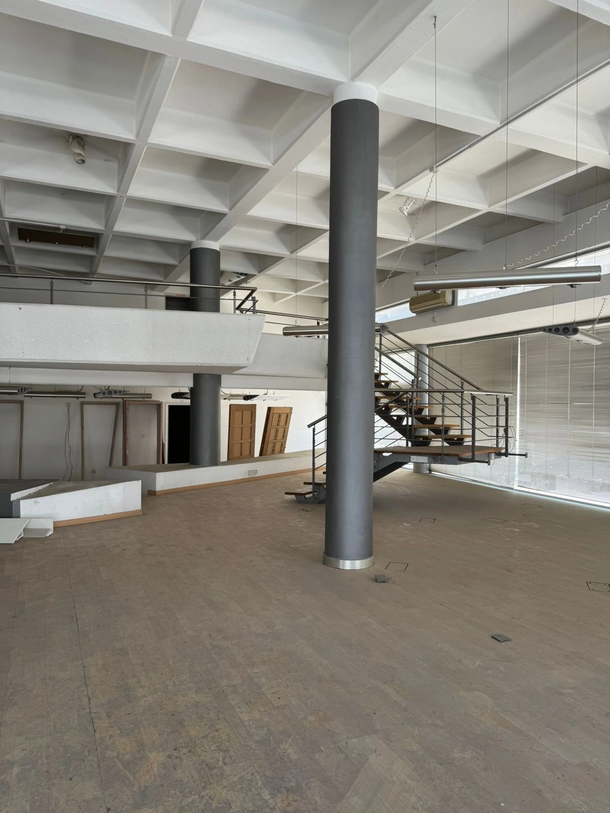 The office comprises a 300 m² ground floor and a 120 m² mezzanine level, providing flexible and functional workspace suitable for various business uses.