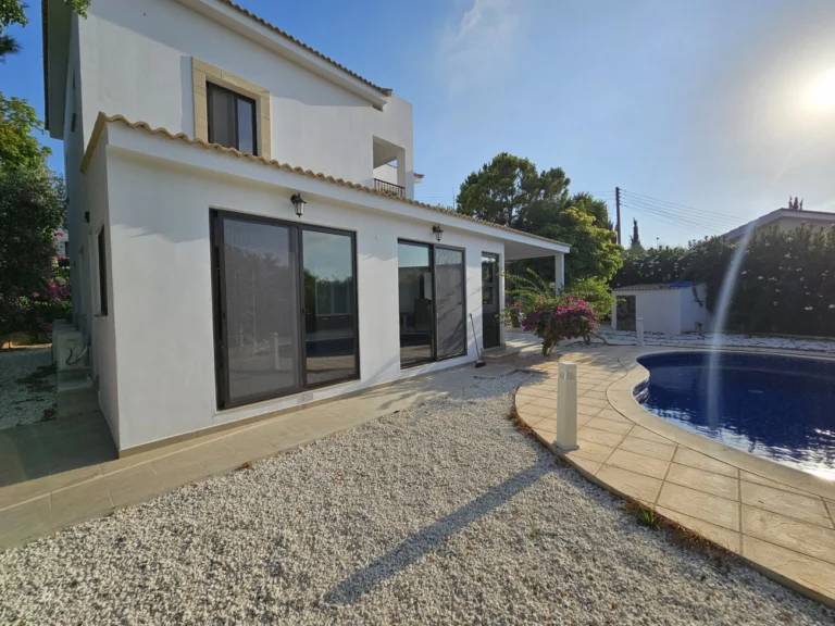 A 4-bedroom villa with a study is for rent in Kuklia, Secret Valley, Paphos, recently renovated and partially furnished, featuring new air conditioners and a new swimming pool. The total area of the villa is 250 m², with 220 m² of living space on a 900 m² plot. The villa includes three bathrooms, a barbecue area, and parking, located on a quiet cul-de-sac just 1800 m from the sea.
