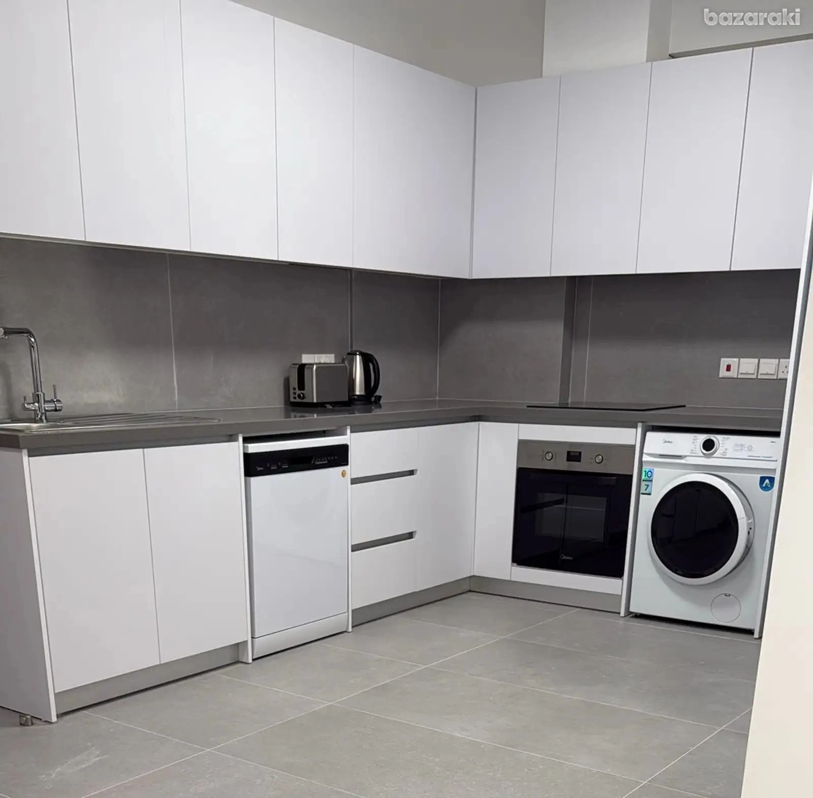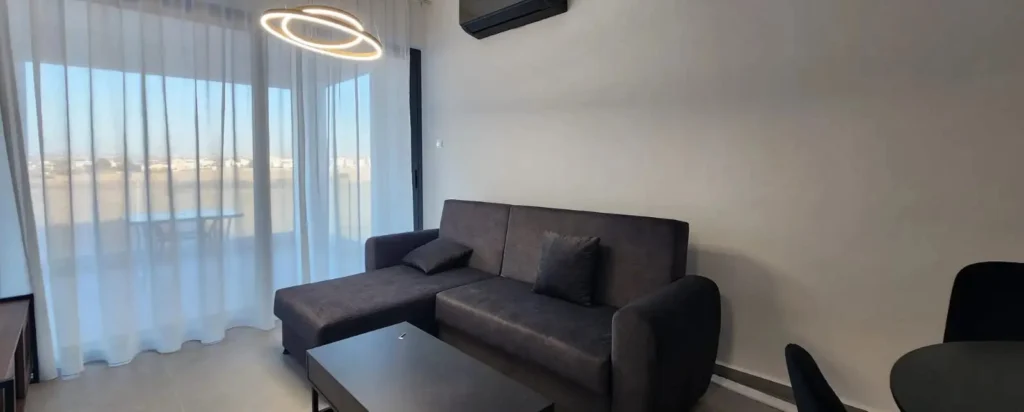 One-bedroom apartment of 65 m2 for rent in Livadia, Larnaca. The apartments include one bedroom, one bathroom, an open-plan kitchen, a living room and a balcony. The apartment is located on the 4th floor. The property is fully furnished and equipped with household appliances, as well as equipped with an air conditioning system in all rooms. The complex has an elevator and a communal swimming pool, as well as a covered parking space. The residence is located in a quiet area with convenient access to infrastructure. The apartment is brand new, previously uninhabited, is offered for long-term rental with a contract of 12 months, a two-month deposit and a flexible check-in date.