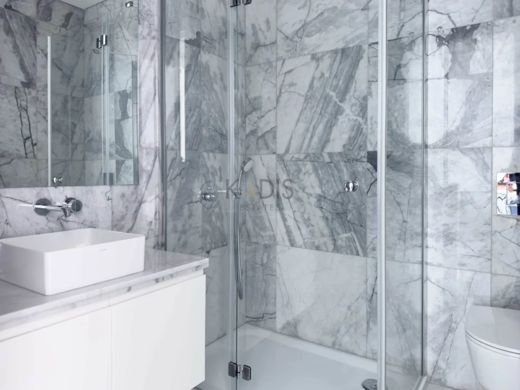 Built in 2022, the apartment is fully furnished in a contemporary style. It has an open-plan living and dining area, a sleek kitchen, and a spacious bathroom. Large south-facing windows provide plenty of natural light and stunning sea views. The unit is equipped with a central AC system and boasts excellent energy efficiency with an A+ rating.