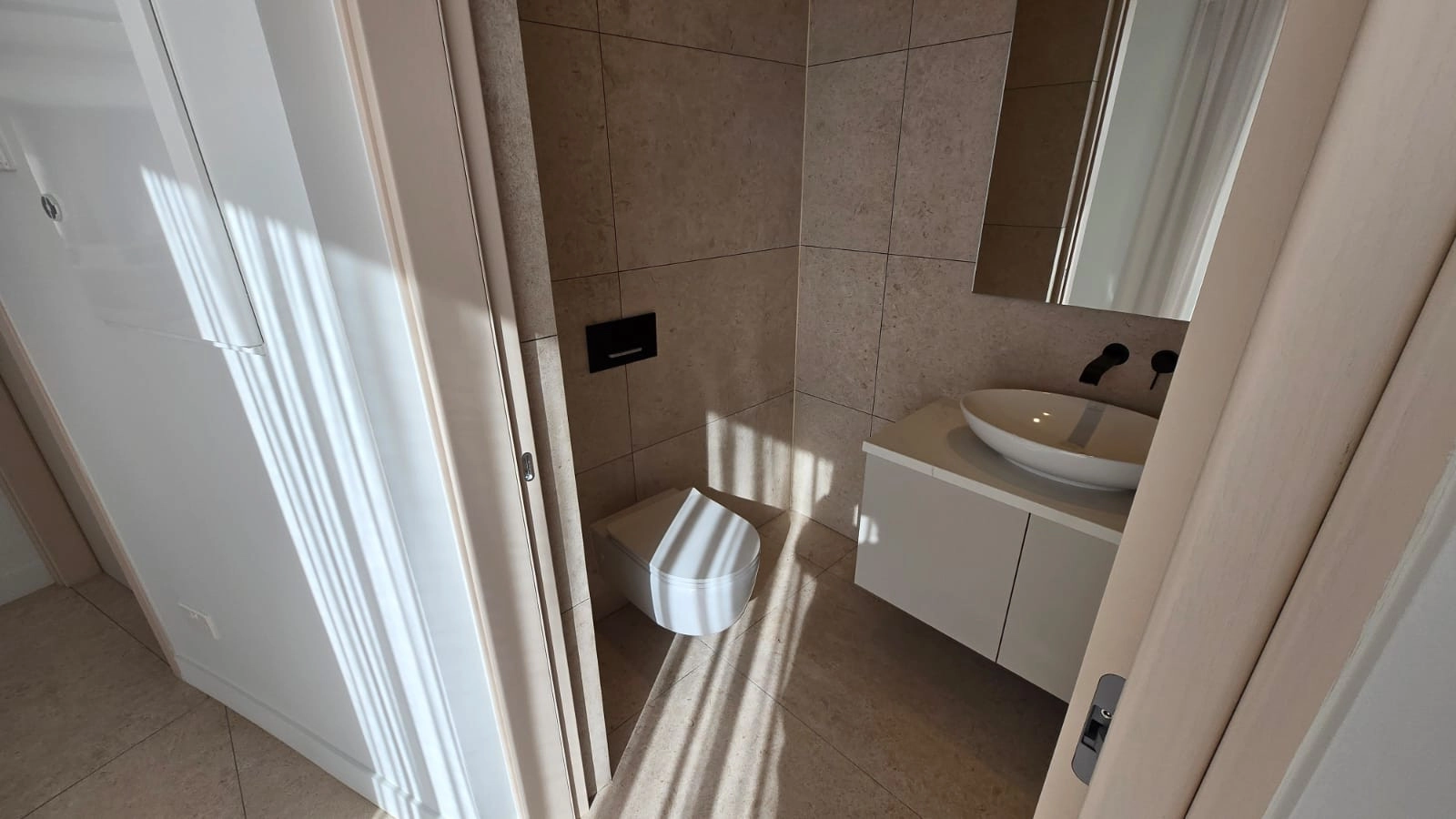 A guest WC is discreetly positioned within the living area.