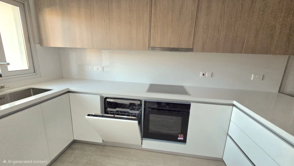 This modern, renovated apartment is available for rent in the desirable Agios Tychon Tourist Area. Offering 95 m² – 80m² of internal space, 15m² covered verandas. The apartment features two spacious bedrooms and one elegant bathroom. Double bed and table with chairs will be provided. Located on the second floor of a well-maintained four-story building with an elevator, this home combines comfort with convenience.