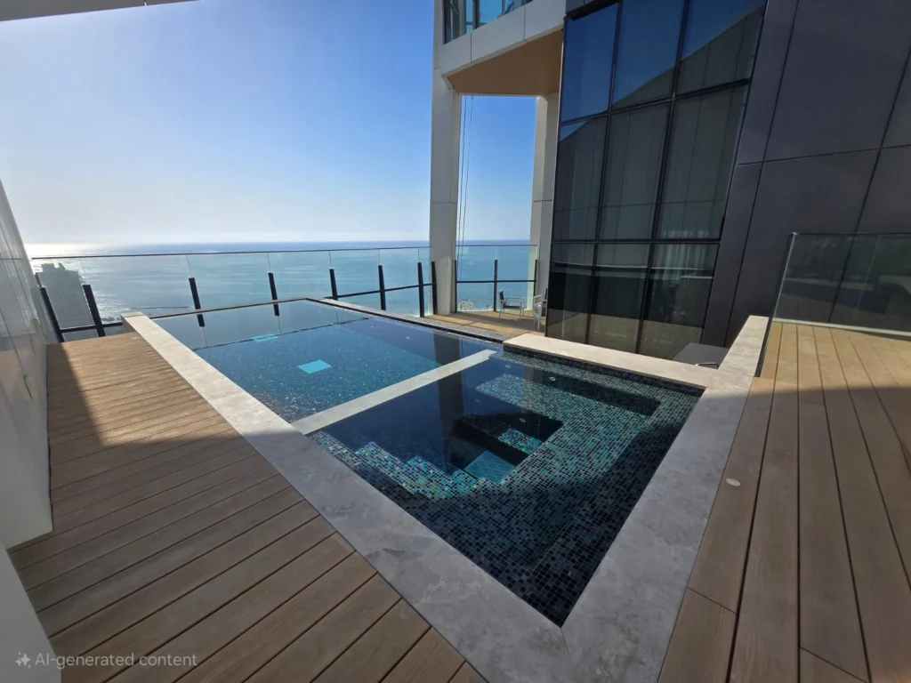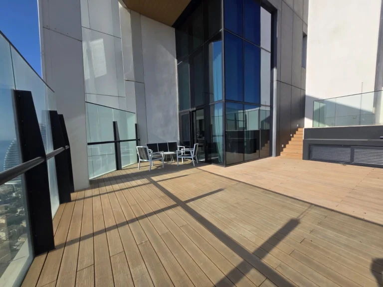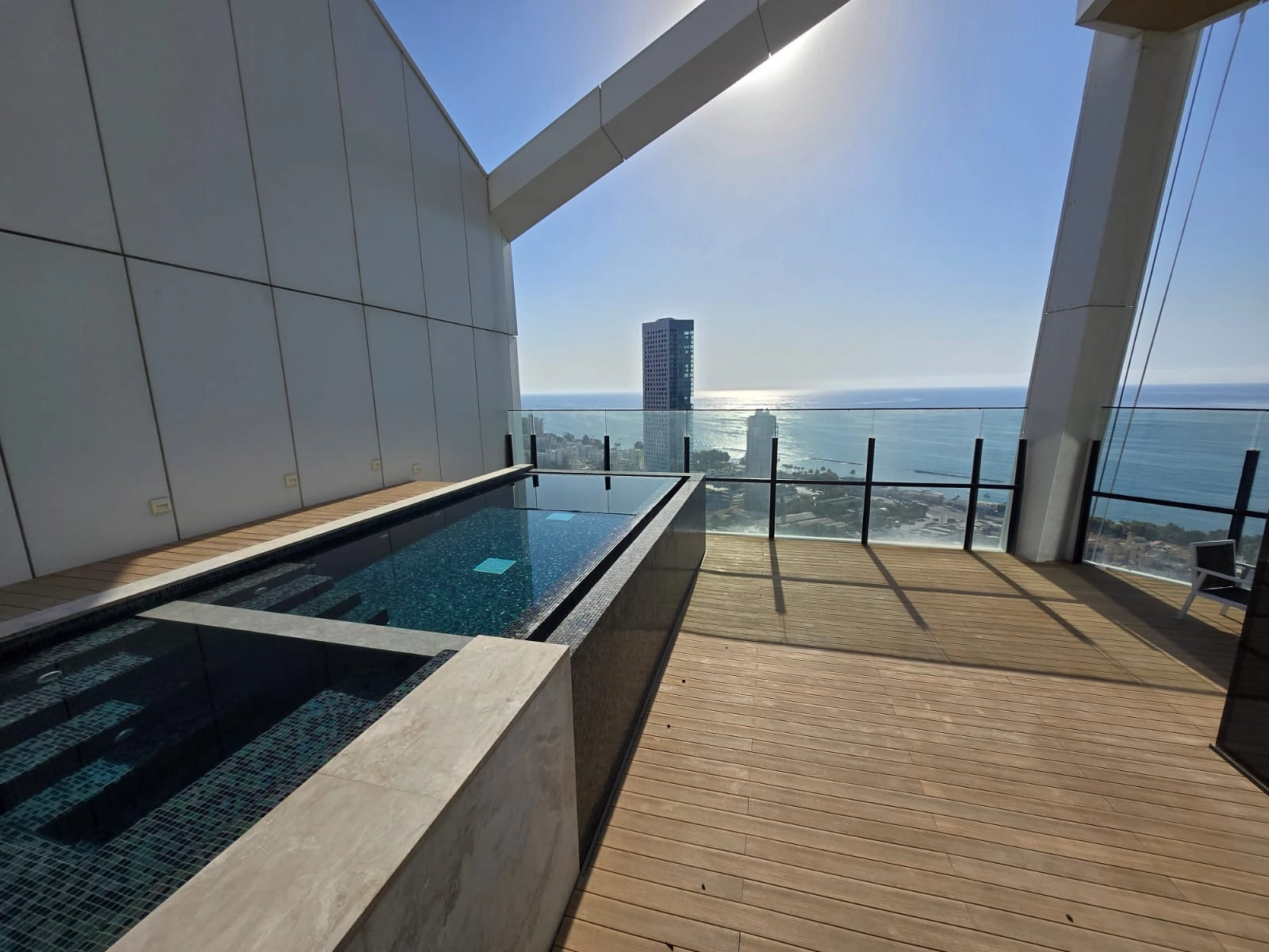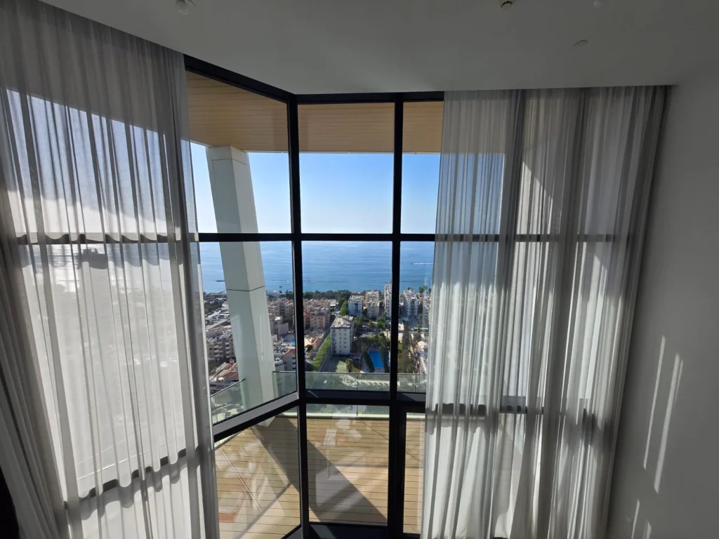 Perched on the 19th floor, this stunning duplex offers breathtaking panoramic sea views and exceptional indoor-outdoor living. An incredible 165m2 inside covered area, 56m2 outside covered area and 116m2 outdoor uncovered area.