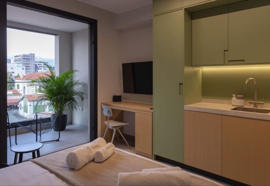 RENT studio Agia Zoni (city center), Limassol. 1 bed. 1 bathroom. new building 2025. fully furnished. air conditioning. common rooftop. weekly apartment cleaning possible. 1 minute walking distance to all shops and sea. already has dishes and appliances. Price 1500 euros + deposit (The price includes water, electricity, internet and common expenses).