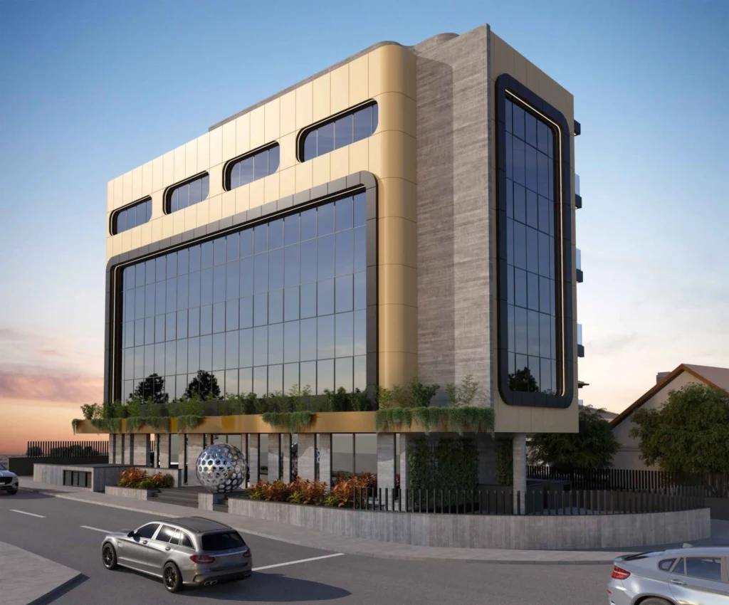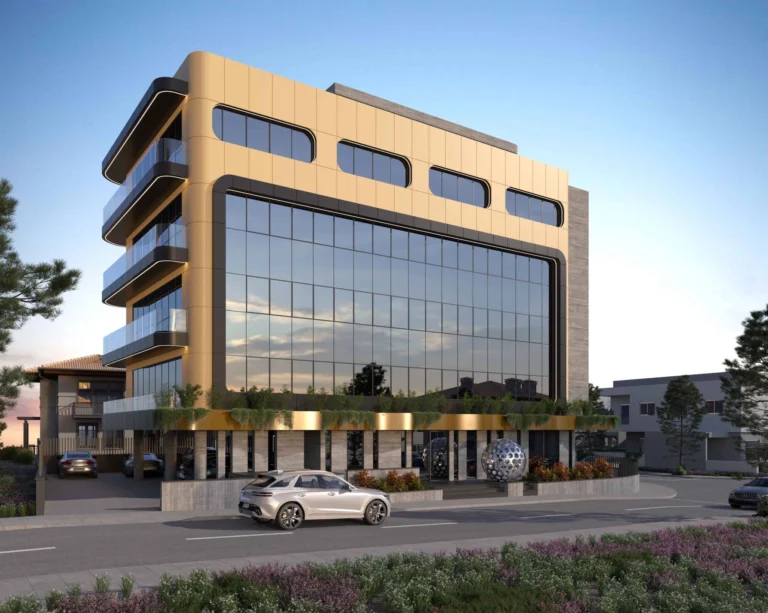 Modern office space for rent in the Agios Nicolaos area of Limassol. The office building features covered verandas, open verandas, and an alfresco rooftop. The business center is fully equipped with modern amenities: the Alfresco rooftop area is equipped with a gym, sauna, hydro massage showers, video surveillance and access control systems are installed, and the entrance is secured. The building is equipped with photovoltaic panels, suspended acoustic ceilings, raised floors and has the highest energy efficiency class — A.