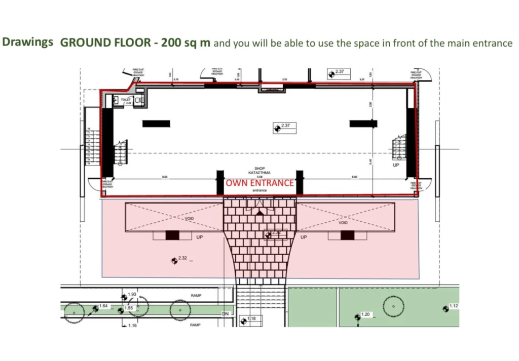 This property is part of a prestigious new waterfront development, directly opposite the famous Dasoudi Beach, one of Limassol’s most popular and busy areas. It is ideal for a restaurant, branded store, or showroom, offering excellent visibility, panoramic sea views, and customer flow.Property specifications: basement: 91 m², 5 parking spaces, main retail space (ground floor): 200 m² with high ceilings and display windows. Facade terrace: spacious open area with sea views, mezzanine: 117 m², including bathrooms. Total leasable area: 408 m².The property is rented in a shell & core condition, allowing for customization to suit the tenant’s needs.