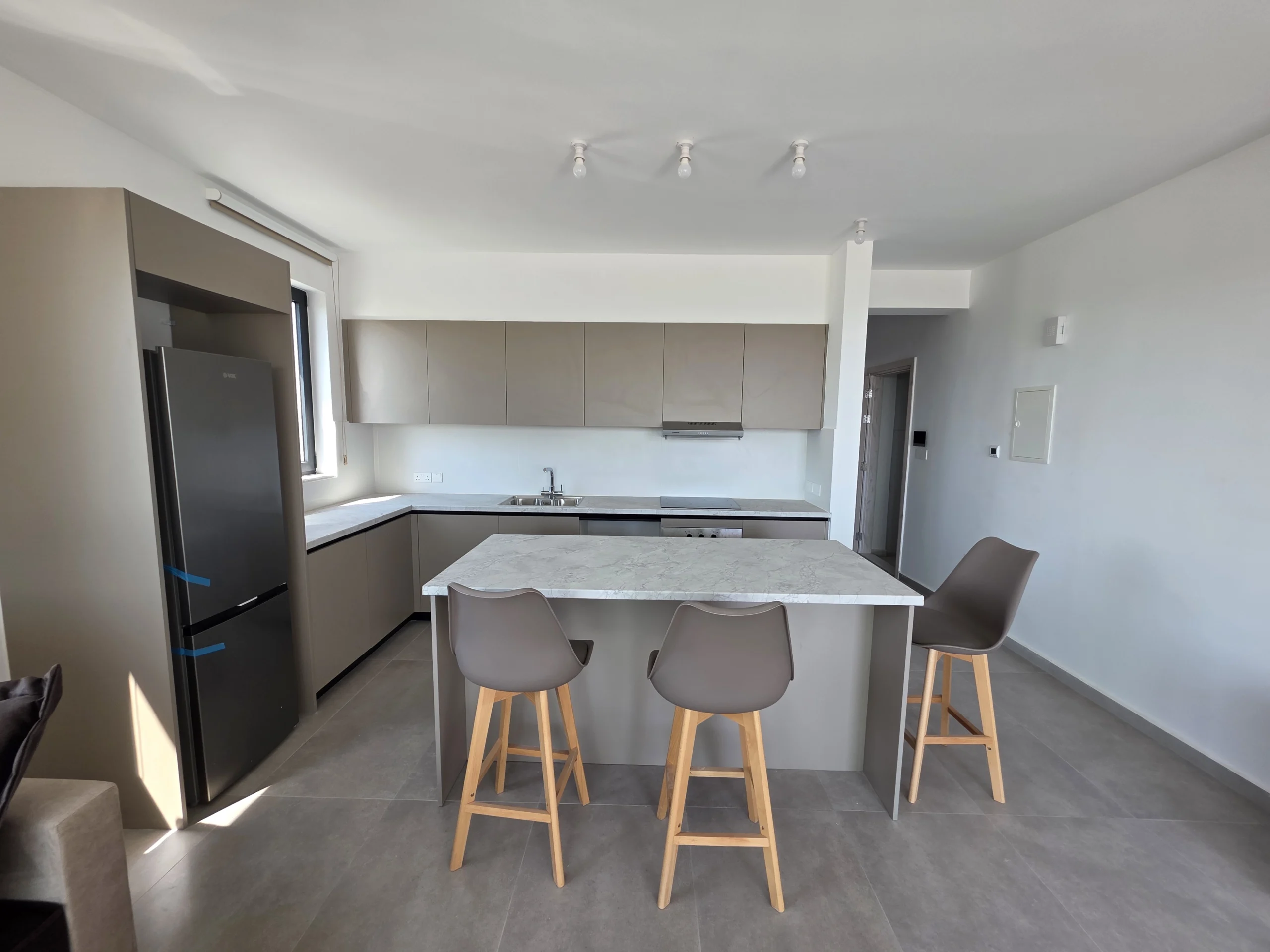 New 2 bedroom apartment for rent in the area of Land of Tomorrow, Larnaca. The apartments are rented for the first time. The apartment is furnished and equipped with necessary household appliances. The project provides for a spacious living room with an open-plan kitchen-dining room with sea views, two cozy bedrooms, two bathrooms, two covered verandas. There are air conditioners in all rooms. A underfloor heating system is installed. Covered parking space. The apartment with a beautiful sea view is located 5 minutes drive from the center and all the infrastructure.