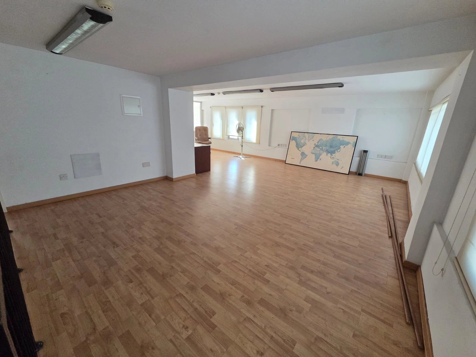 Office for rent, two floors (ground floor and mezzanine) with a total area of 190 sq.m., located on a central and busy street Makariou Era Avenue, Apollon. The space includes two large open areas, two separate offices, a kitchen, and a toilet. Suitable for use as an office, dance studio, or sports/training facility.