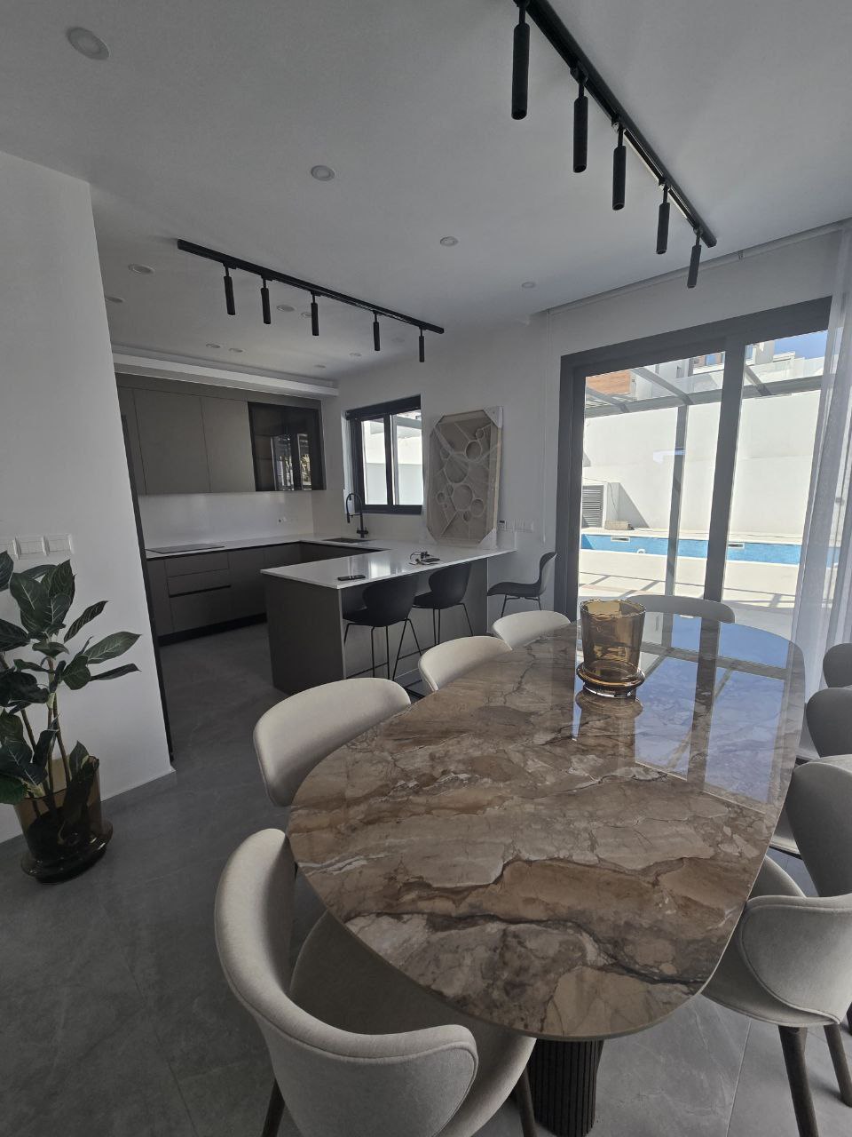 RENT house Agios Tychonas, Limassol. 4 bedrooms. 3+1 bathrooms. Fully furnished. New air conditioners in all rooms. Balconies with sea view. Washing machine. Dishwasher. Private pool. Gated complex. Covered parking. Price 5500 euros + 2 deposits.