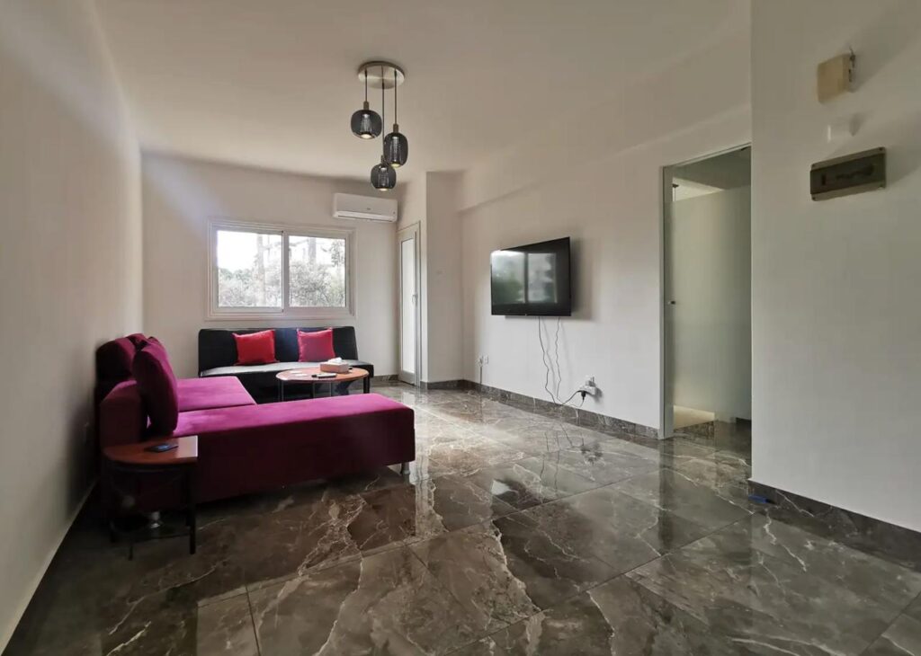 RENT Limassol – tourist area Germasogeia. Fully furnished 2-room apartment with balcony. 2 bedrooms, 1 bathroom, total area: 80 m², 1st floor, fully furnished, air conditioning in all rooms, balcony, elevator in the building, open parking, old building, energy efficiency class: A. Price: 1400 €. Reg:AM: 1256/AA258/E