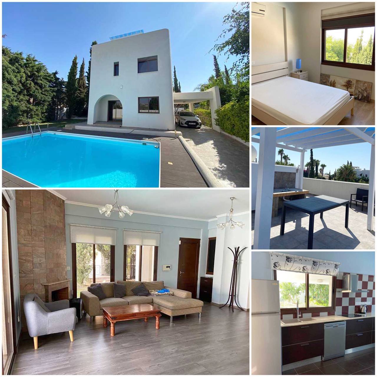 4655 RENT Limassol. House 130m2. Location Agios Tychonas behind the highway. Plot area 250m2. 3 bedrooms. 2 bathrooms (has a bathtub). Air conditioners. Balcony. Rooftop terrace. Yard, garden. Pool. Covered parking. Price 2500€ (+150€ for pool and spa maintenance). LN56, RN186.