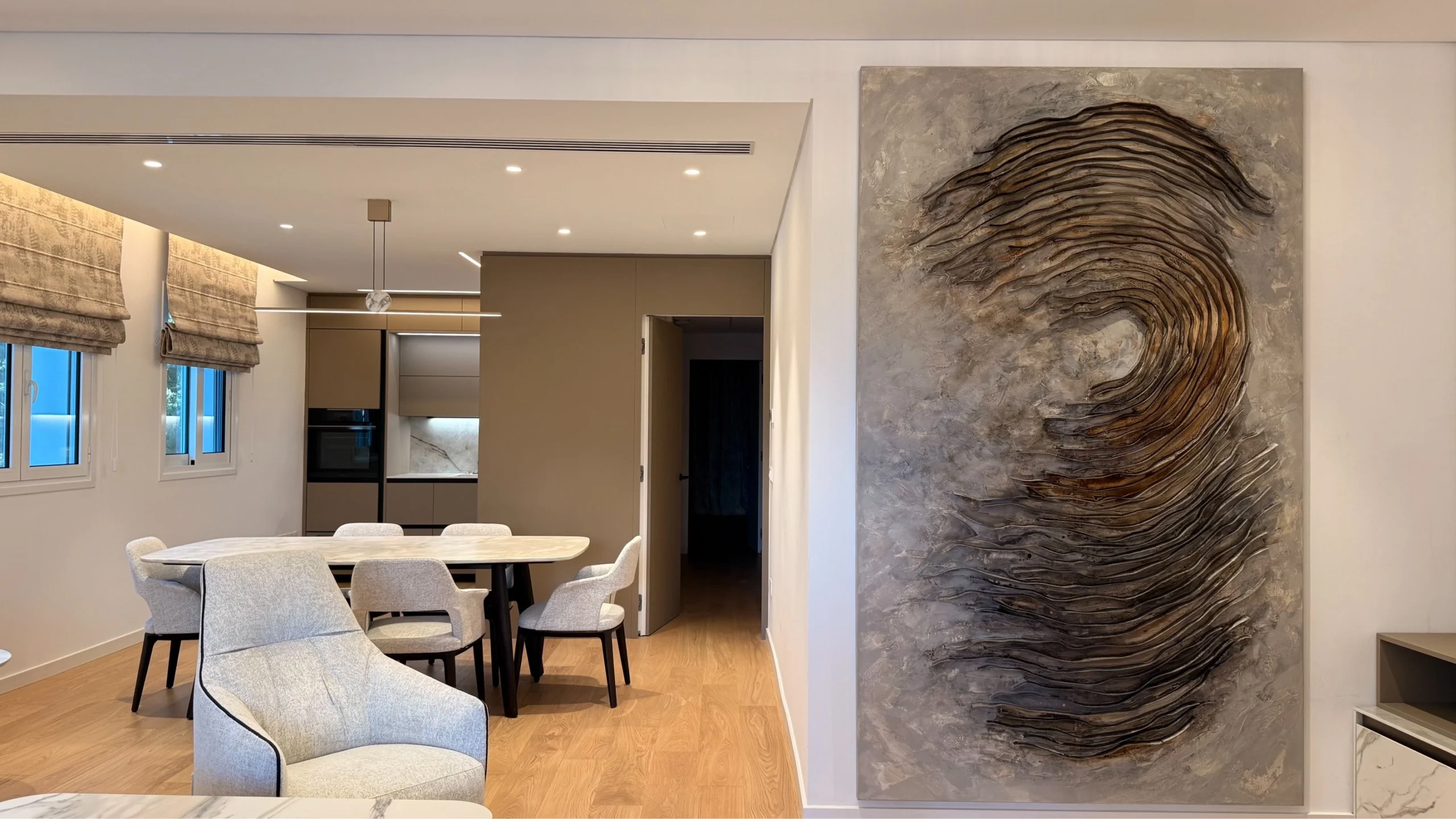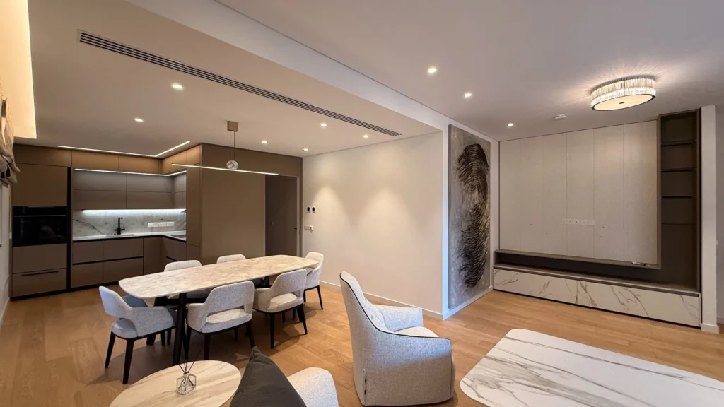 The property boasts a large private garden, ideal for outdoor living, entertaining, or quiet relaxation in a peaceful marina setting. The apartment includes two spacious bedrooms, three modern bathrooms, underfloor heating, a VRV air conditioning system, underground parking, and comes partly furnished. It is fully equipped with modern appliances, making it a comfortable and stylish seaside home.
