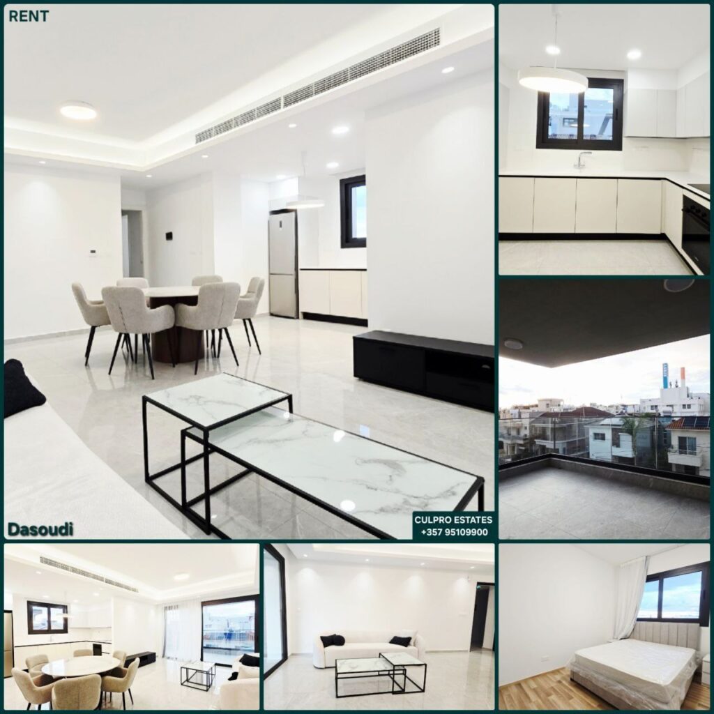 Rent. Spacious 3 bedroom apartment in the Dasoudi area, Limassol. All infrastructure and the beach are within walking distance. 1st floor. Living area: 100 sq m. Total area: 122 sq m. Kitchen. Living room. 3 bedrooms. Bathrooms: 2 + guest toilet. Veranda. VRV air conditioning. Pantry. Covered parking. Year of construction: 2025. Energy efficiency class A. Pets allowed. Price for 1st floor: 2,750 + 2 deposits.