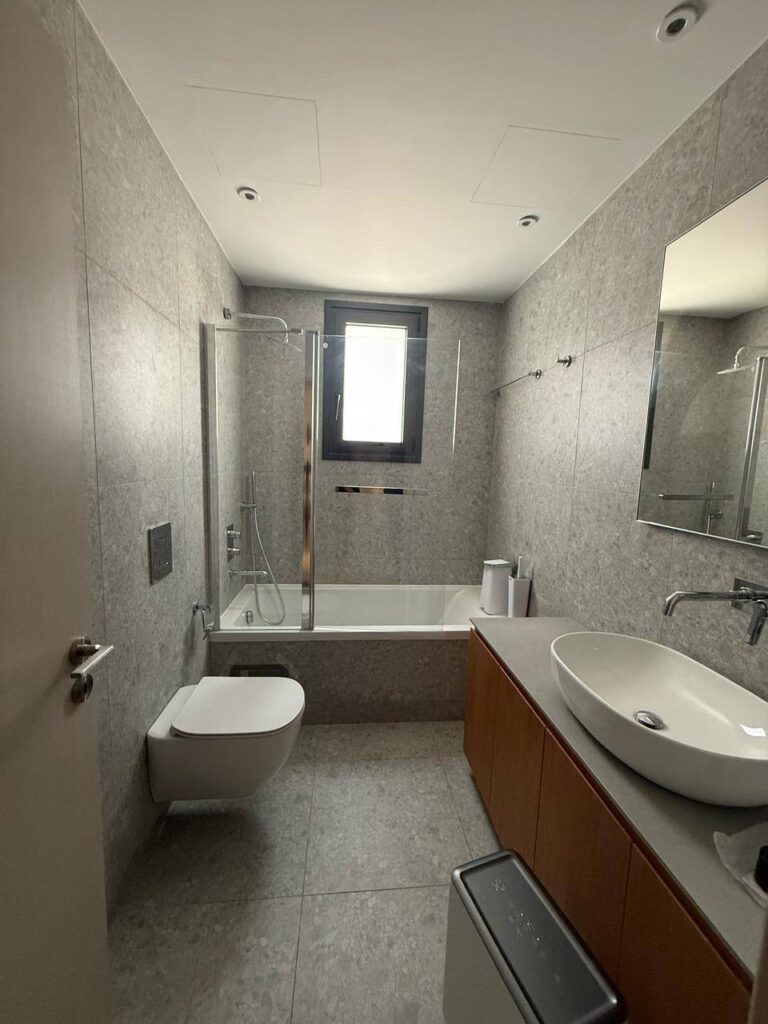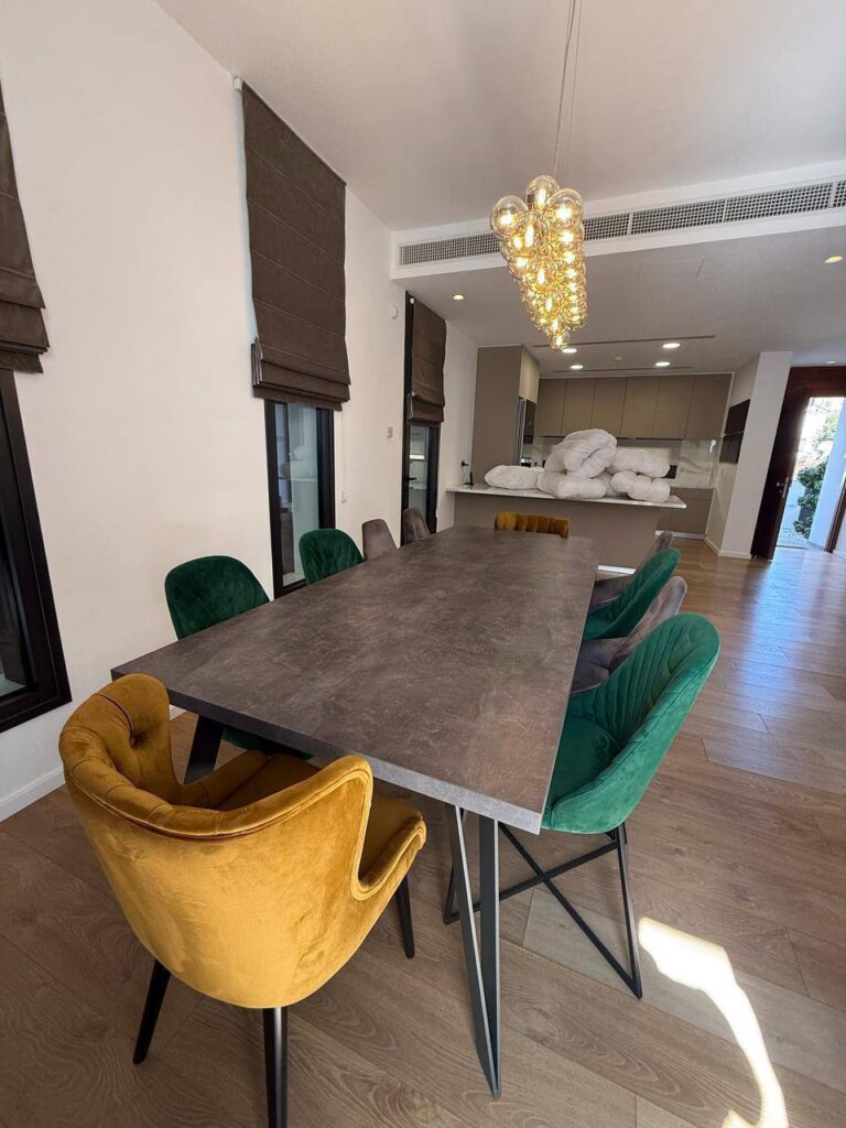 On the ground floor, you are treated to a vast open living/dining/sitting area,veranda, glass doors and windows offering spectacular views of the garden and Germasogeias dam.
