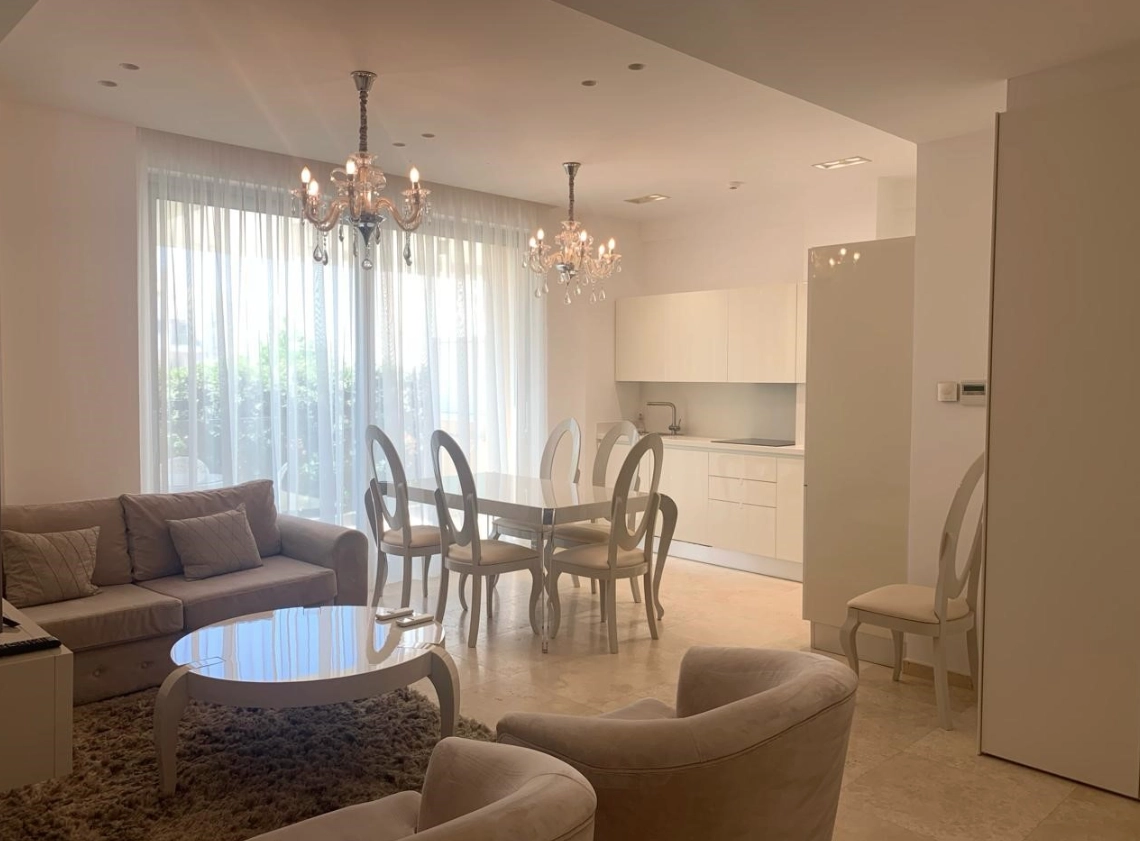 A modern luxury apartment in Cyprus is offered for rent. It is located in the new complex in Limassol next to the developed infrastructure of the city: prestigious hotels, cafes, restaurants, shops, banks, post office. The closed territory of the complex has a large swimming pool, a recreation area with a gazebo, a terrace, a garden. The complex has an elevator.