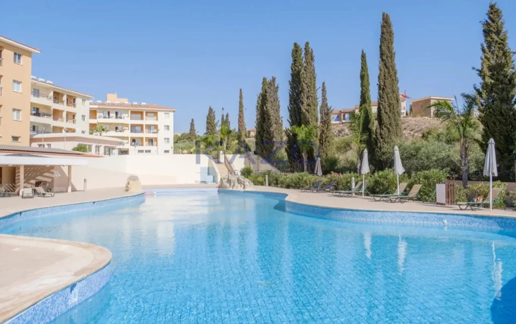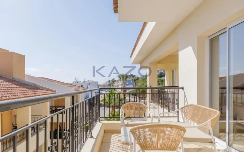 Step outside to enjoy the communal swimming pool, perfect for relaxing or socializing with neighbors. Chloraka is known for its charming blend of local amenities, cafes, and beautiful sea views. Residents enjoy a friendly atmosphere in a peaceful neighborhood, while still having convenient access to shops and public transport.