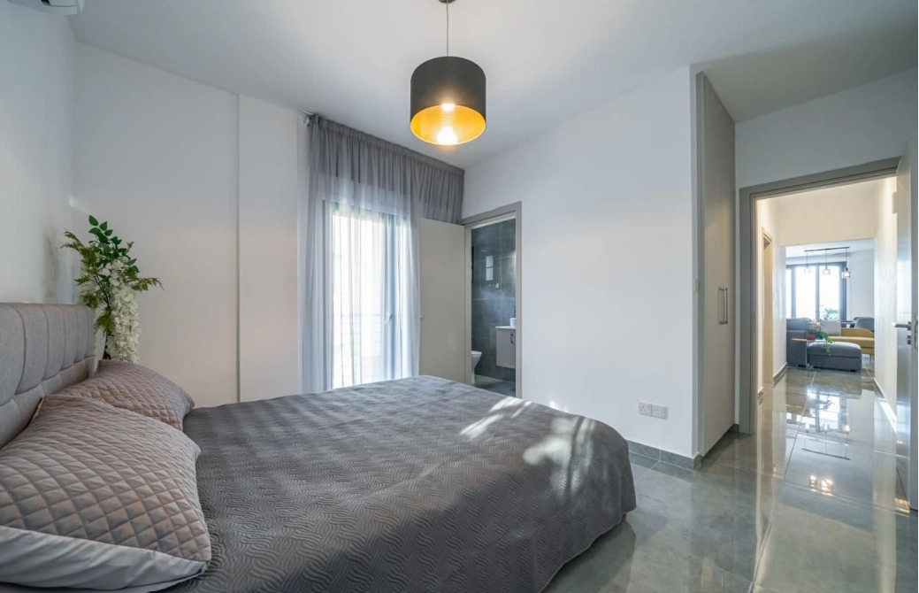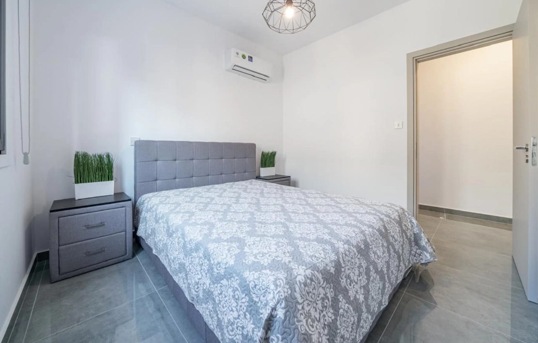 Fully renovated and fully furnished 2-bedroom apartment in a prime location in Larnaca. The apartment features two spacious bedrooms, two modern bathrooms, and a large veranda perfect for relaxing or entertaining. Located on the first floor, it includes covered parking and a convenient storage room. All rooms are fully air-conditioned, and the apartment has been completely renovated and furnished to a high standard, offering a stylish and comfortable living environment. With bright and airy interiors, high-quality finishes, and a thoughtful layout, this property provides both functionality and elegance.