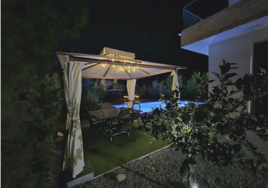 Fully equipped with German furniture, Italian sanitary, Bosch appliances, A/C, underfloor heating, heated pool, solar panels, sauna, electric gate, water filtration and premium outdoor furniture.