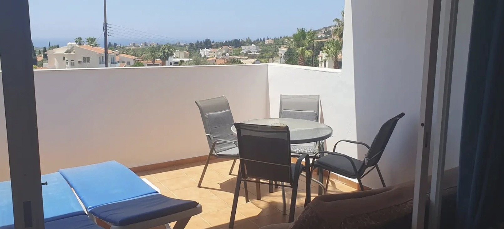 1-bedroom apartment for long-term rent in Peyia, ideally located at the corner of Akamantos Avenue and Evaggelismou, on the 1st floor. The apartment is fully furnished and features a large sea-view balcony with stunning sunset views.