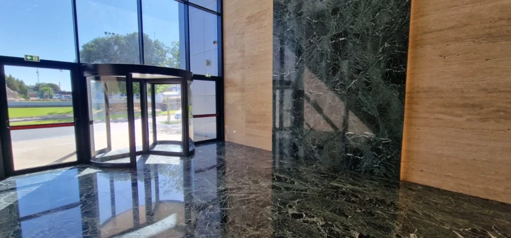 An entire floor is for rent for an office in a modern high-rise commercial complex in Nicosia, located in the Dasoupolis area, on the main business project of the capital. The total floor area is 349 m2, including a veranda of 67 m2. Each floor has a veranda with views of the surrounding area, and tenants have access to a private roof garden with views of the Nicosia skyline. Office space amenities: High-end finishes, Raised floors and suspended ceilings, Air conditioning and the possibility of installing ventilation, the possibility of installing building control systems, fiber-optic cable infrastructure for voice and data transmission, fire alarm and fire extinguishing systems, controlled entrances and exits, video surveillance systems, concierge services.