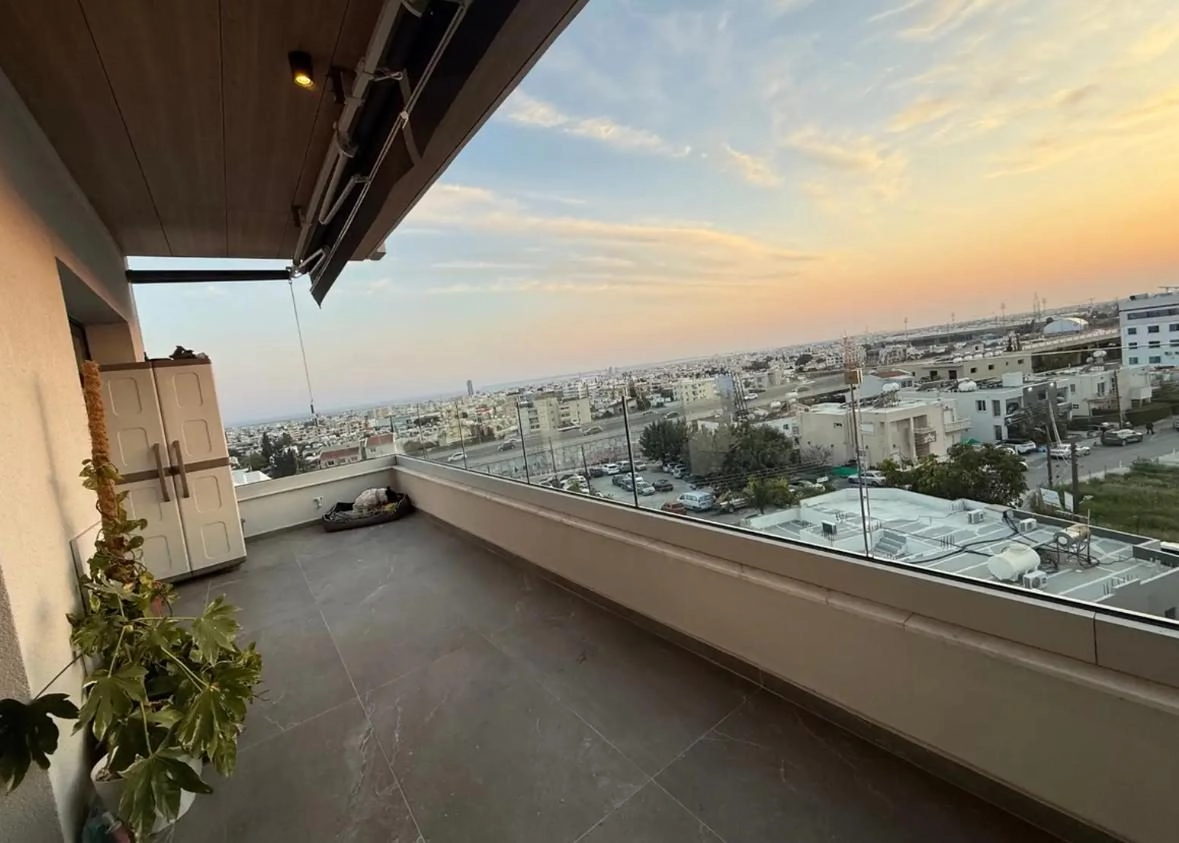 For rent: Bright two-bedroom apartment in Agios Athanasios, Limassol with sea and city views. The internal area is 85 m², plus an 18 m² veranda and a 9 m² private storage room. The apartment is located on the second floor of a modern building constructed in 2025, fully equipped with air conditioning and featuring an open-plan layout. Inside, there are two bedrooms, one main bathroom, and one en-suite bathroom. The building includes an elevator, covered parking, and a storage room.