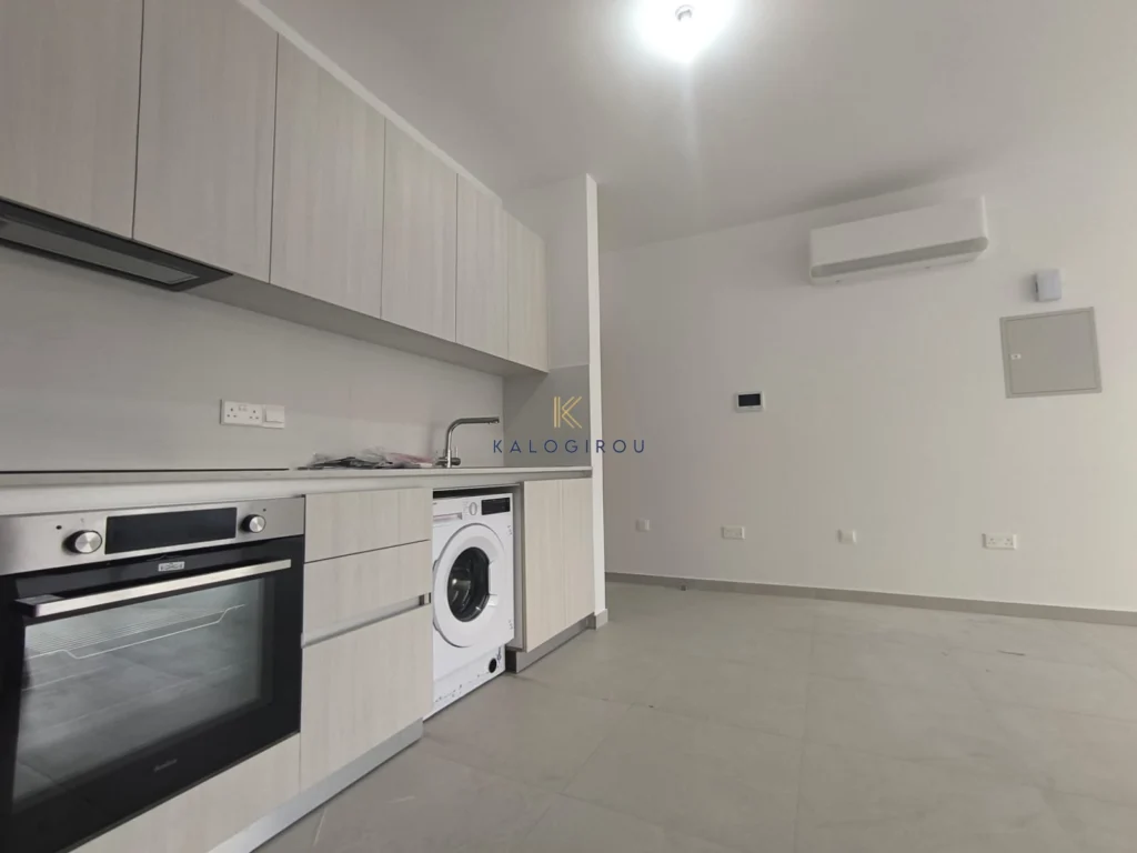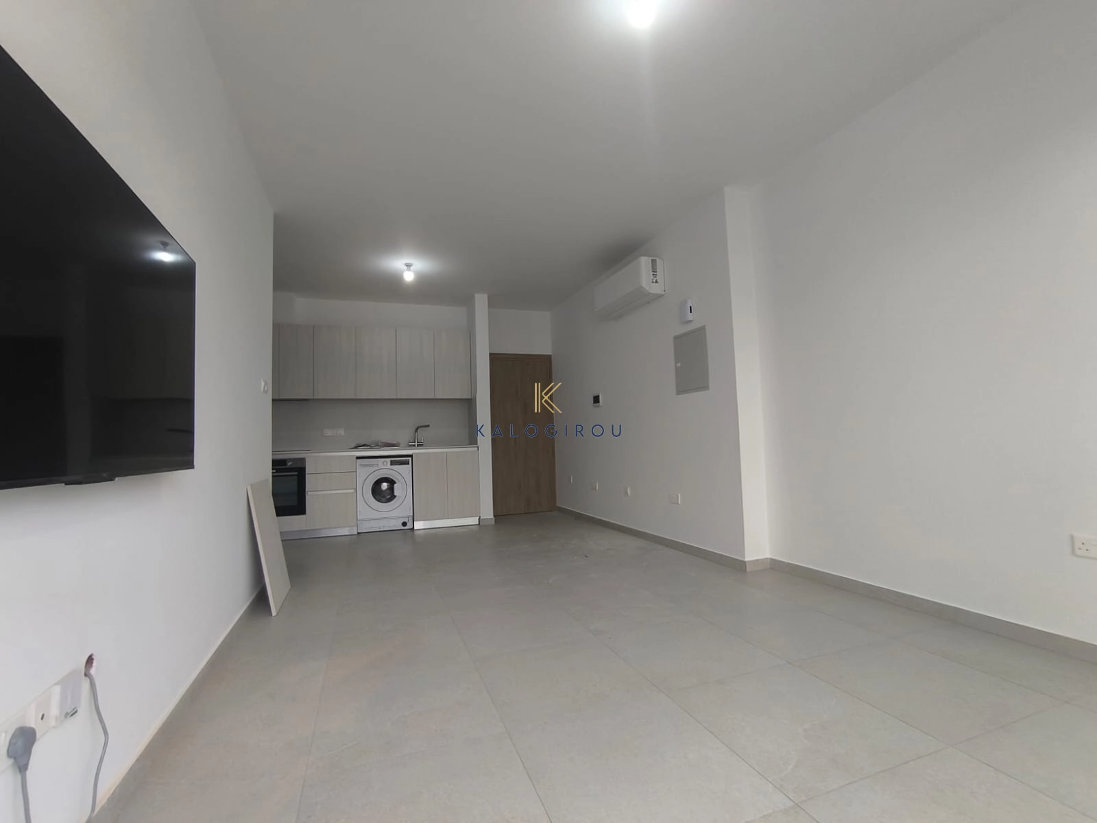 Apartment for Rent in Oroklini Area. The property consists of an open plan kitchen with living room and dining area, electrical appliances, A/C, one bedroom, 1 shower, 1wc, 10 sq. m of covered veranda, storage room and parking space.