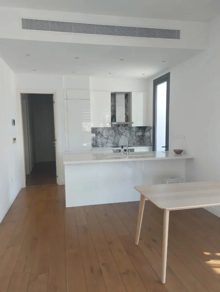 Bright and modern two-bedroom apartment located in the Mesa Geitonia area, offering comfortable and contemporary living. The property features an open-plan living and dining area, creating a spacious and welcoming atmosphere.