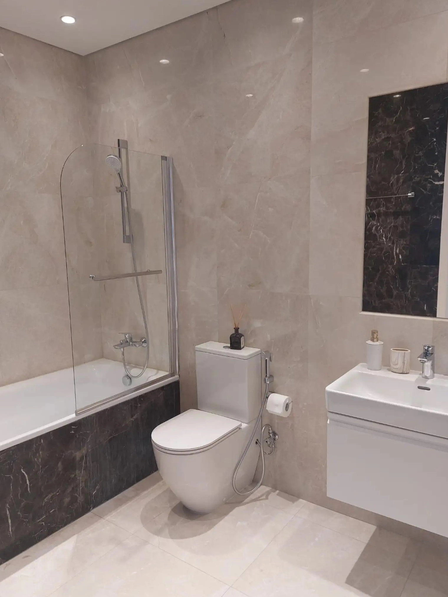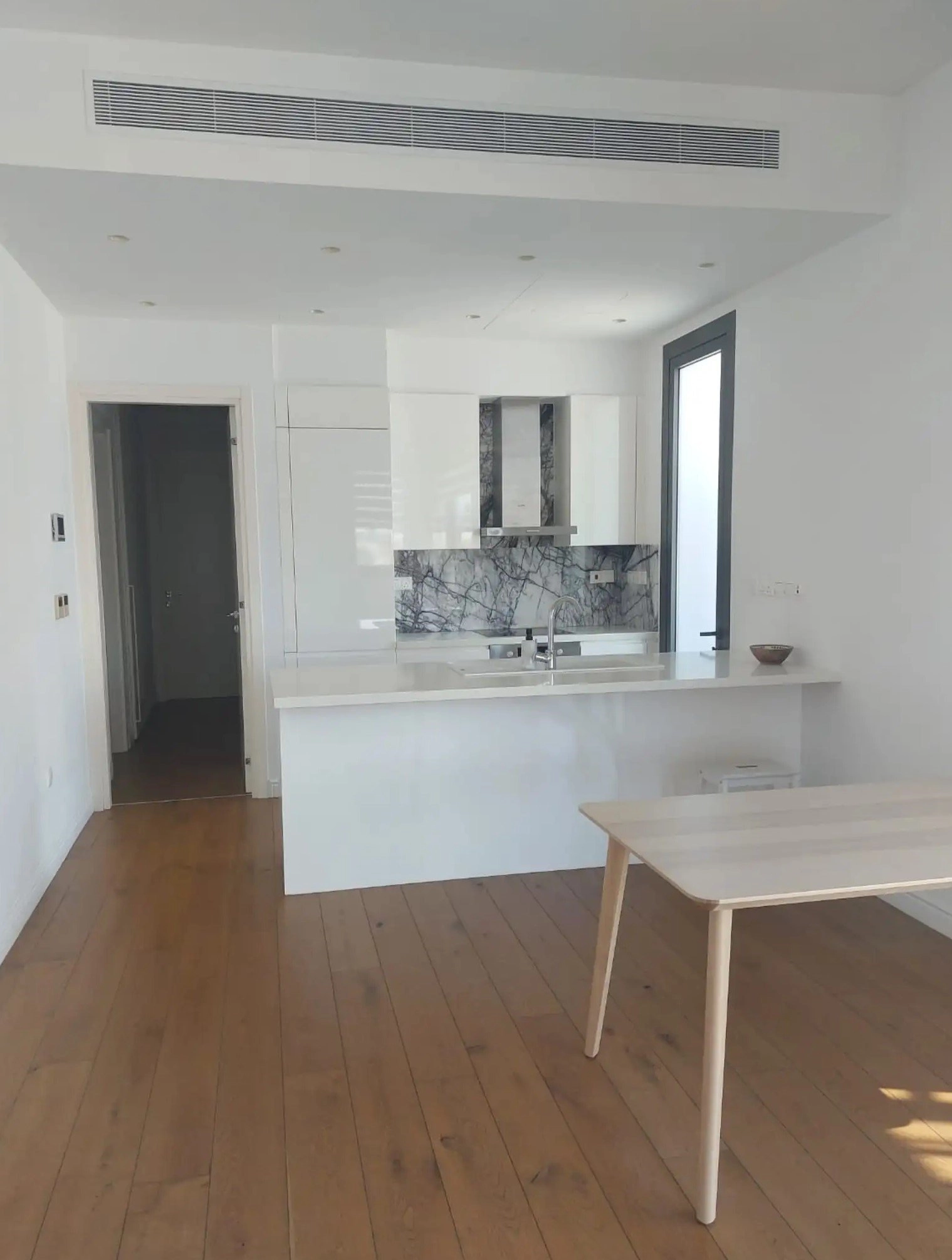 The apartment is equipped with underfloor heating and air conditioning in all rooms, ensuring year-round comfort. It is situated on the 2nd floor of a well-maintained building with an elevator and includes a balcony.