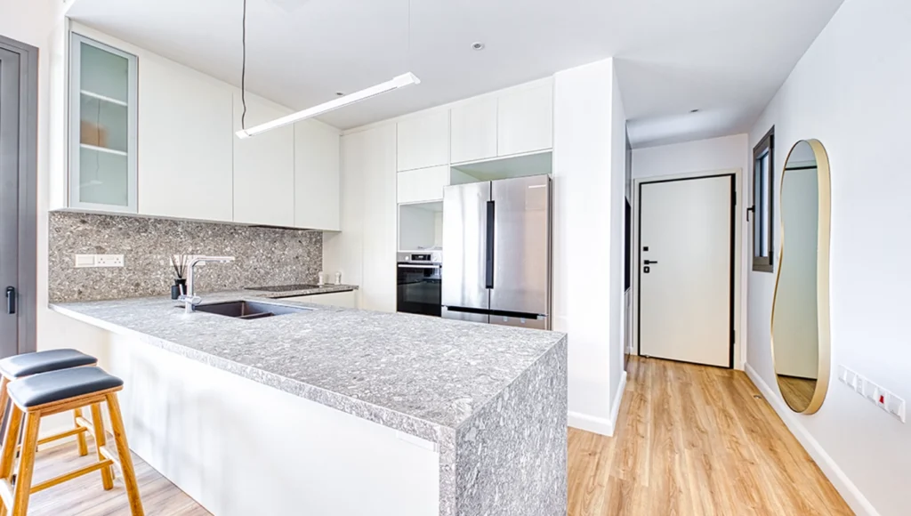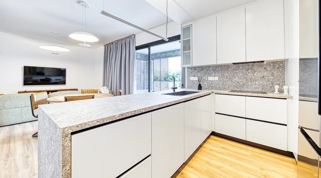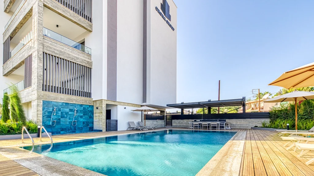 New 2-bedroom apartment is located in a new project in the area of Germasogeia with a few minutes by walk to the sea and close to all amenities. The most developed area with a unique infrastructure and proximity to the sea and to the business part of the city. A new club format of a residential complex with a swimming pool. There will be 4 stores building of only 10 apartments: two 1- bedroom, four 2- bedroom, two 3- bedroom apartments and two 3 bedroom penthouses with roof garden. Apartment features: a living/dining area, an open plan kitchen, 2 bedroom, 2 bathroom and covered veranda. The private parking space and separate storage room are equipped for all apartment owners. Premium class apartments with exclusive finishes. High quality laminated flooring in all bedrooms, living, and dining areas. Enclosed protected area. Locking systems for heavy-duty entrance doors. Video intercoms in every apartment. Residence was designed to offer a sense of exclusivity and privacy – a truly exceptional living experience, featuring luxurious finishes, spacious layouts, and breath-taking views.