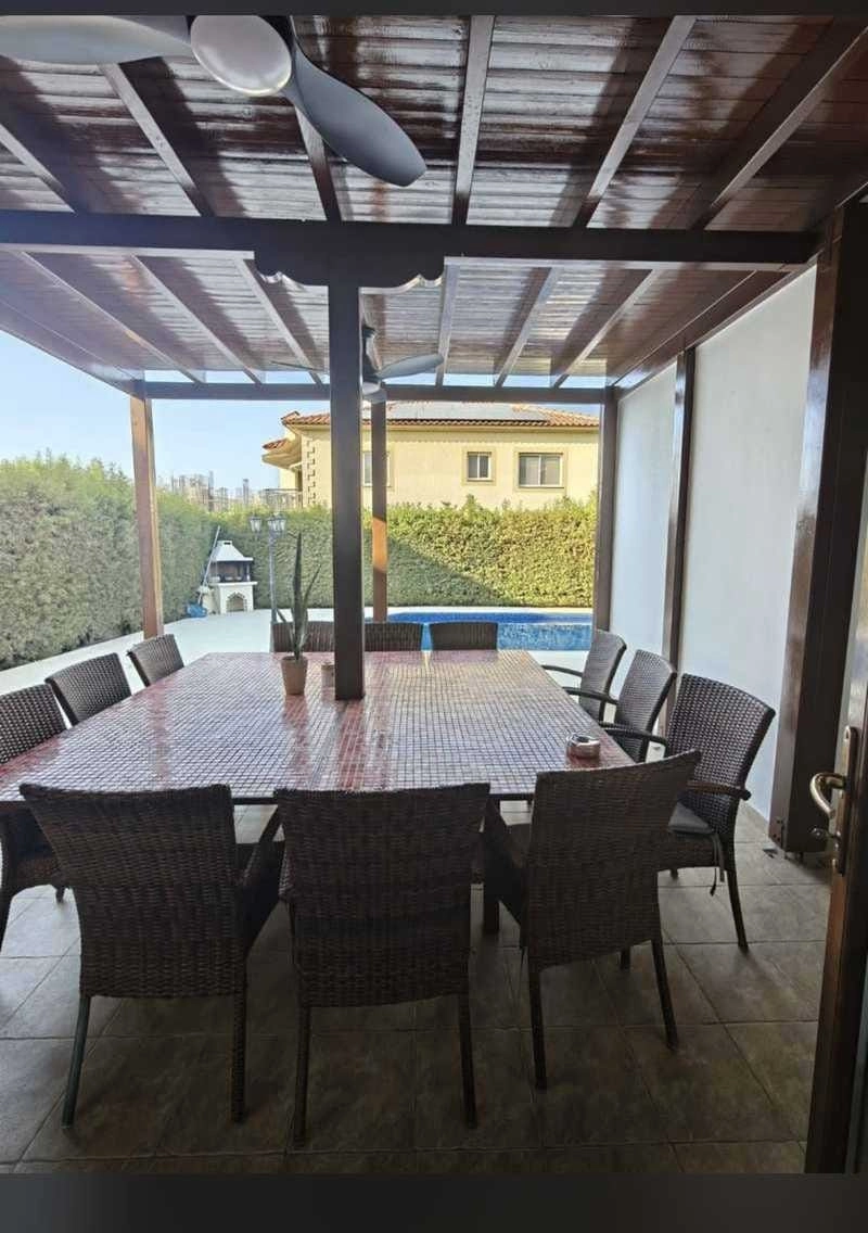 350 sqm of covered area featuring 5 bedrooms , 2 wc , two bathrooms and one maid’s room on the ground floor . Spacious living room divided into two separate cozy areas perfect for entertaining . Spacious renovated fully equipped kitchen Private 10*5 swimming pool . Two storerooms