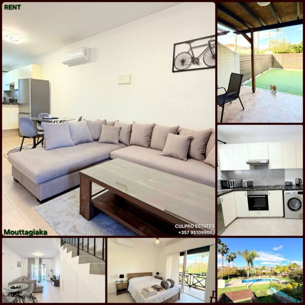 Rent 2 bedroom townhouse with new furniture in the Mouttagiaka area beyond the highway, Limassol. All infrastructure and beach within a 4-minute drive. 2 levels. Living area: 85 sq m. Plot area: 102 sq m. New furniture and appliances. Kitchen. Living room. 2 bedrooms. Bathroom + guest toilet. Balcony. Veranda: 17 sq m. Open parking. Year built: 2010, renovation was in 2023. In the complex: pool. Price: 2,000 (negotiable). Agency CULPRO ESTATES Ltd L.N 197/E R.N 1189 +357 95109900 +357 95592209 H258