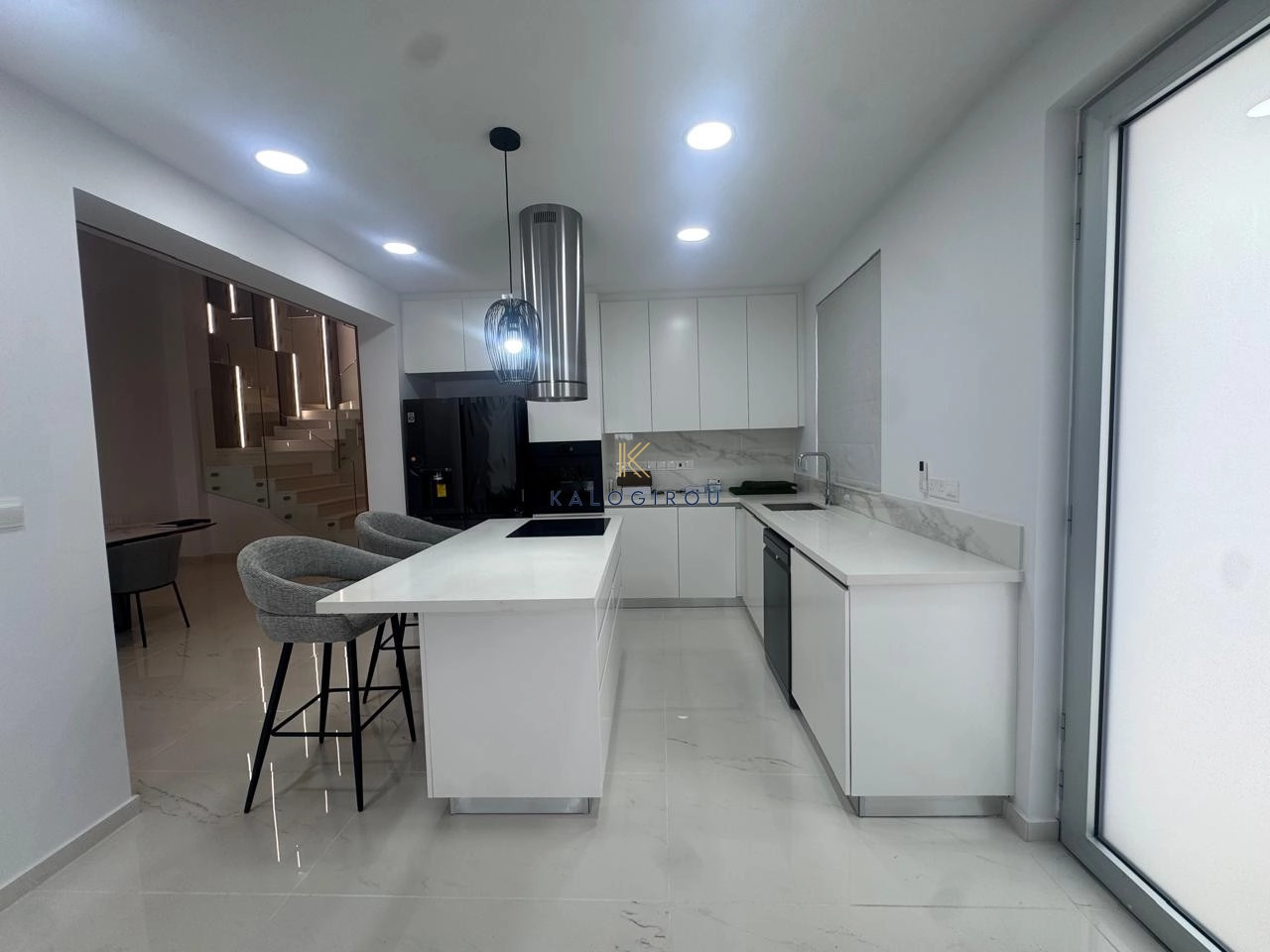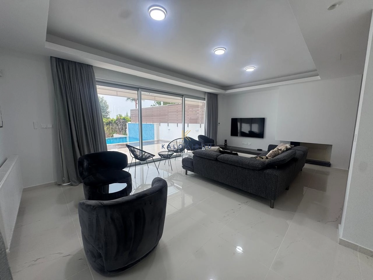 Villa for rent in Pervolia area, Larnaca. This remarkable house on the ground floor it consists of an open plan living room and dining area, open plan kitchen guest WC and a big bedroom. On the first floor it consists of 3 bedrooms, en-shower in the master bedroom, en-suite shower in the second and third bedroom, one common shower, storage room and utility room in the hallway. All rooms in the house have A/C. Externally, this amazing house has a large veranda, large swimming pool and covered parking. The area of the property is characterized as residential and quiet.