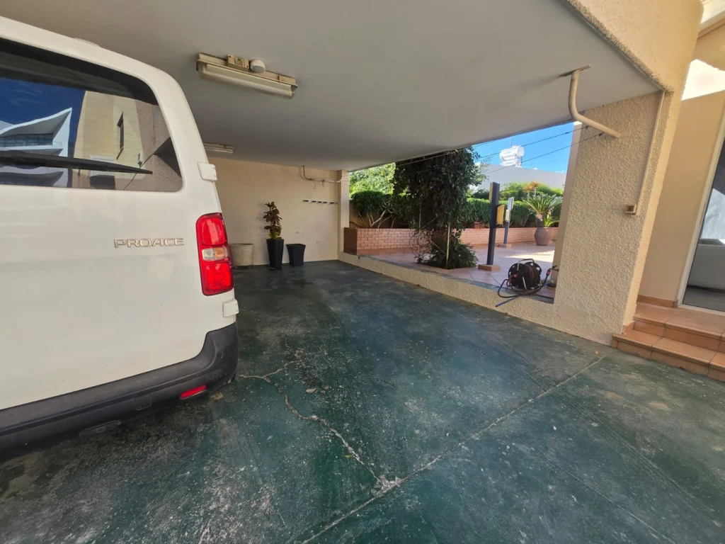 Externally, the property features covered parking for two cars, plus space for up to four additional cars in the driveway. At the rear of the house, there is a charming outdoor area, perfect for outdoor dining and entertaining. There are air conditioning units throughout and central heating with diesel.