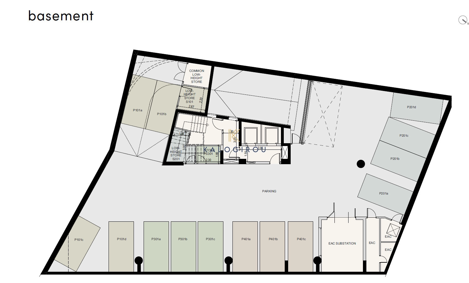 In addition, the offices have right of use of 5 parking spaces and storage on the ground level.