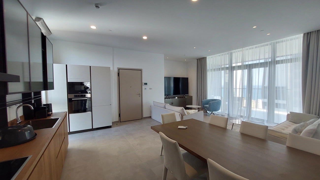 Luxury 3 bedroom apartment for rent, in a high-rise building in Limassol, Germasoy district, within walking distance of sandy beaches, stylish cafes and the best restaurants. All apartments have extensive covered verandas or roof gardens on the south side and have panoramic views of the sea and the city. Unique design of the building. First-class quality materials are used everywhere to ensure that they meet the high standards and expectations of our customers. The apartment consists of an open-plan kitchen with a living room, 3 bedrooms, 2 bathrooms and a guest bathroom. Round-the-clock administrator, Closed entrance/security pavilion. Underground and surface parking. Swimming pool, gym, sauna, management office.