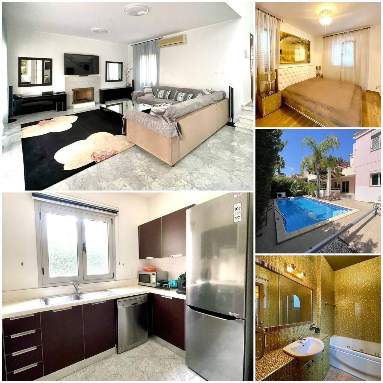 4382 RENT Limassol Villa 168m2 Location Agios Tychonas Sea within walking distance Not far from Amar Land area 350m2 3 bedrooms Air conditioners Heated floor Balcony, terrace Private pool In the complex: pool, gym, children’s playground Price 4500€ LN56,RN186