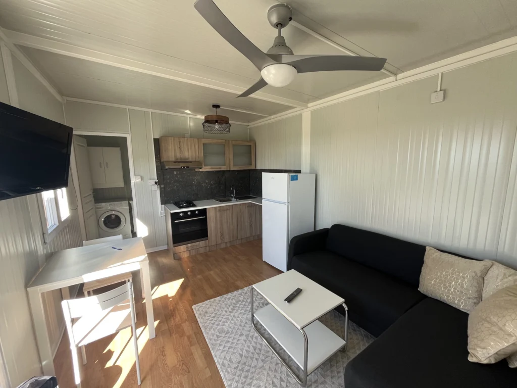 Discover this key ready prefabricated house for rent in the peaceful area of Monagroulli. Built in 2025, this stylish home offers 30 square meters of internal space, providing a cozy yet functional layout with one bedroom and one bathroom. Perfect for singles or a couple, enjoy single-level living on the ground floor with easy access and no stairs.