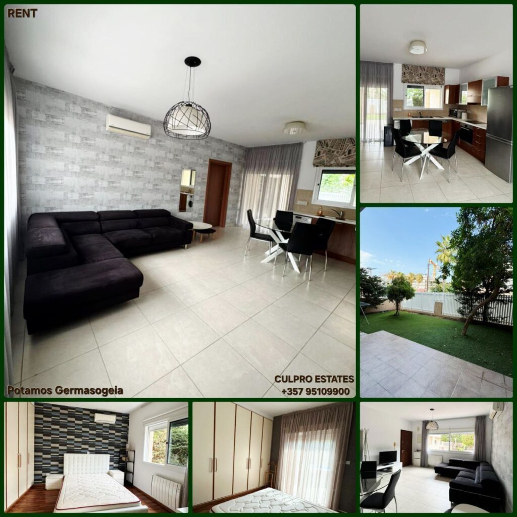 Rent 2 bedroom apartment on the ground floor in the Potamos Germasogeia area, Limassol. All infrastructure and the beach are within walking distance, not far from the Apollonia hotel. Ground floor Kitchen Living room 2 bedrooms Bathroom Veranda Underground parking Swimming pool in the complex Pets prohibited Price: 1,600 Agency CULPRO ESTATES Ltd L.N 197/E R.N 1189 +357 95109900 +357 95592209 H034