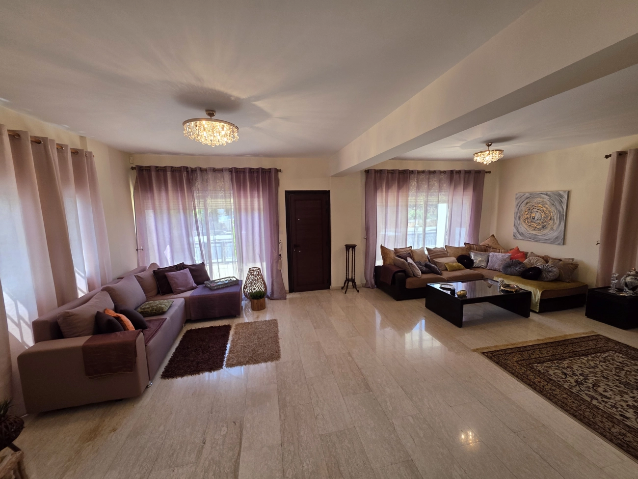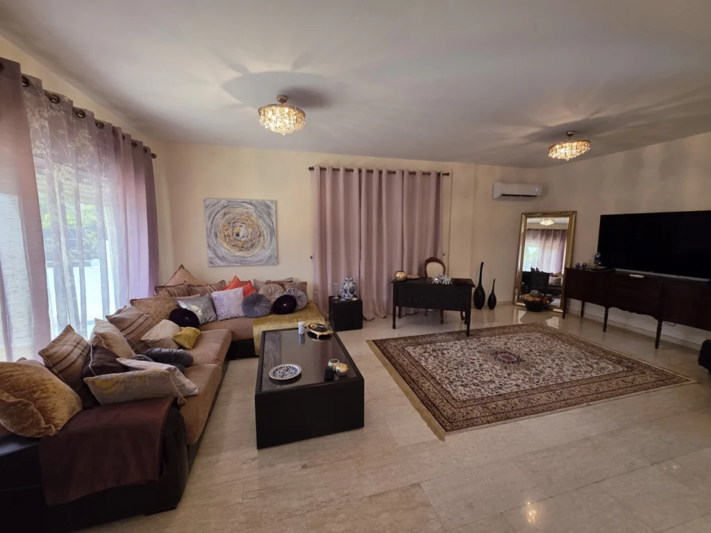 For rent 4 bedroom villa with private pool and mature garden in Limassol. The house is fully furnished and equipped with all necessary appliances and furniture. The property consists of a spacious living room, kitchen, 3 bedrooms, 2 bathrooms with jacuzzi, guest bathroom, spacious veranda, small house( office, near the house).The property has its own well with drinking water, which is used throughout the house, in the garden and pool, so the municipal water bills are very low. In order to save energy, the electricity was upgraded, so the electricity bill is low. Rent includes 2 times a week gardener, 2 times a week pool maintenance.