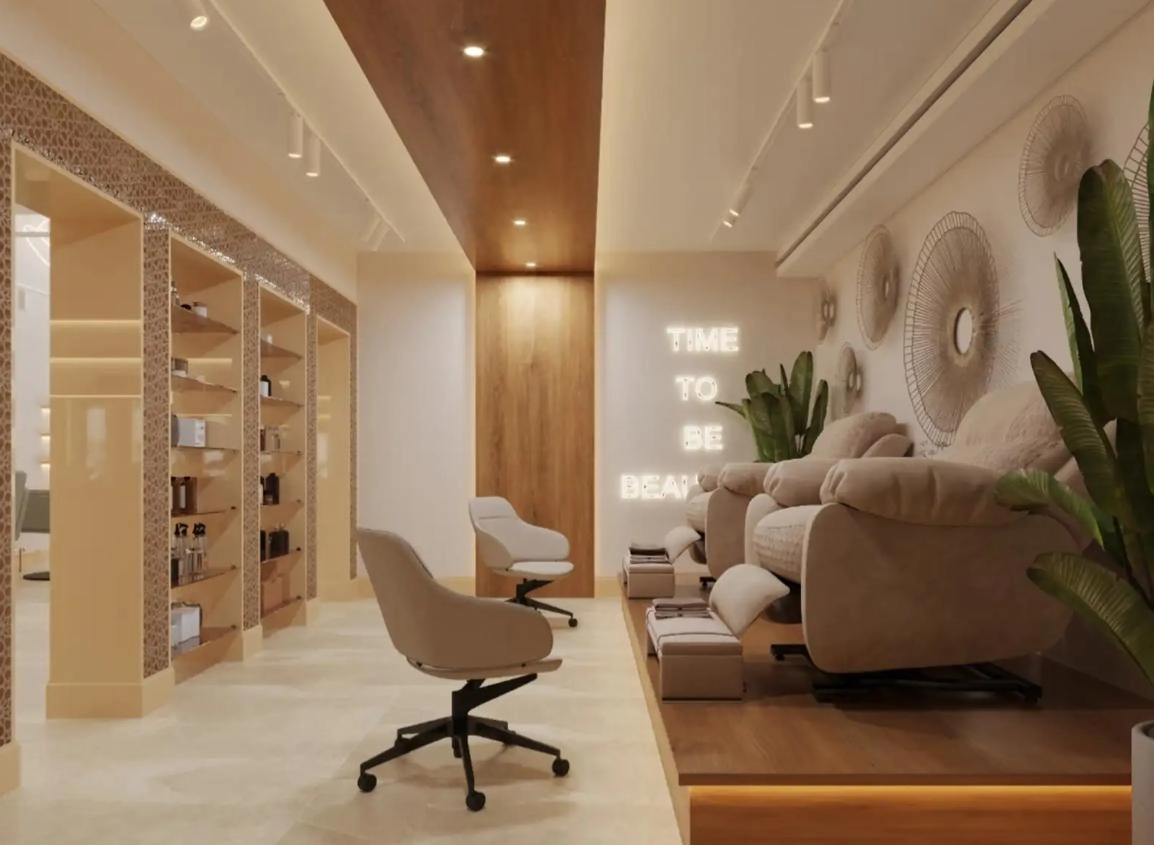 For rent: luxury beauty salon in the heart of the tourist area Potamos Germasogeia, Limassol. The property has a total area of 100 m². The salon is equipped with 3 hairdressing stations, 2 manicure stations, and 2 recliner chairs for pedicure. All furniture is custom-made, including specially ordered Maletti chairs in a unique color. The salon enjoys a prime location with high customer traffic. Parking is available.